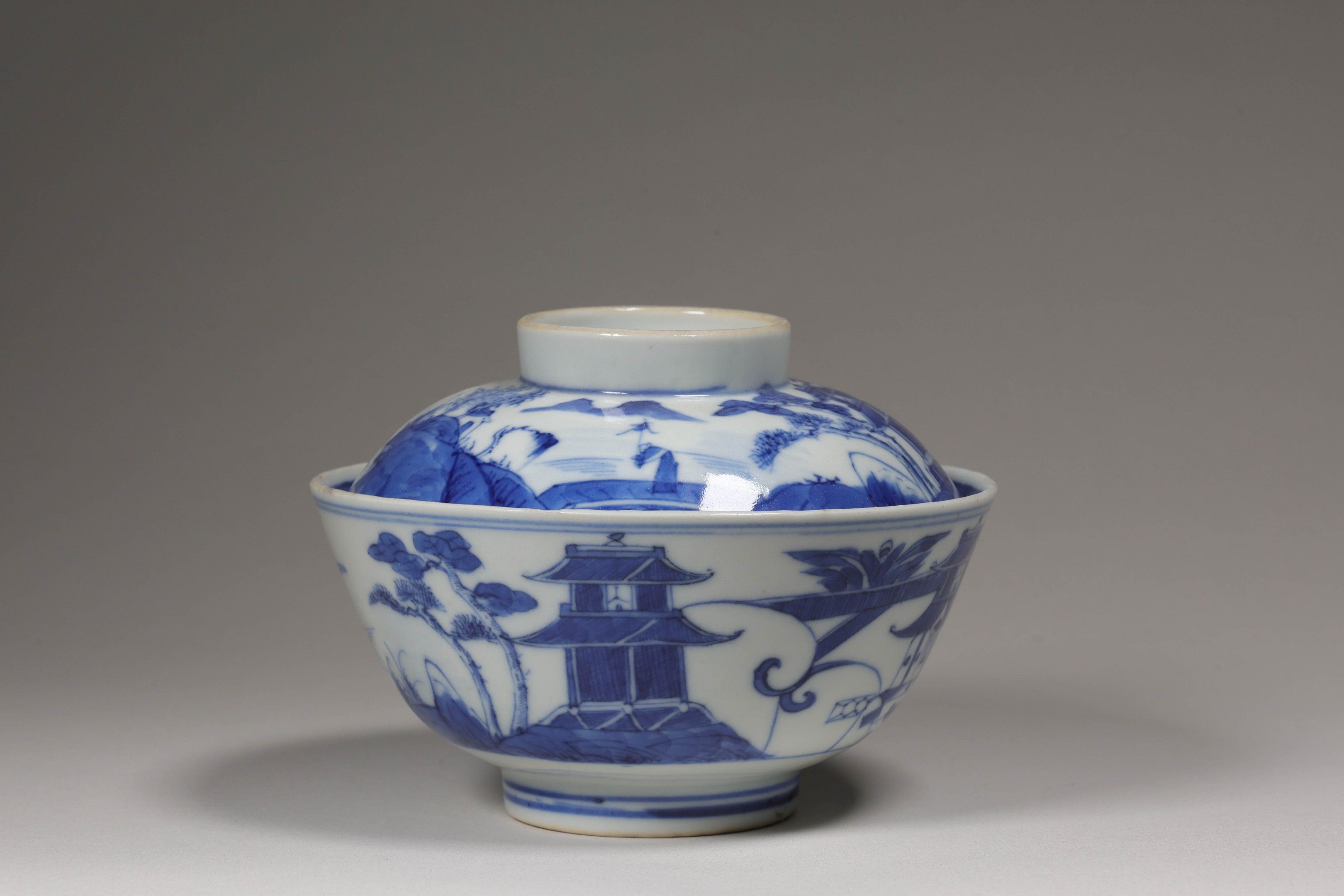 CHINA, 19th century Covered porcelain bowl with blue and whi…