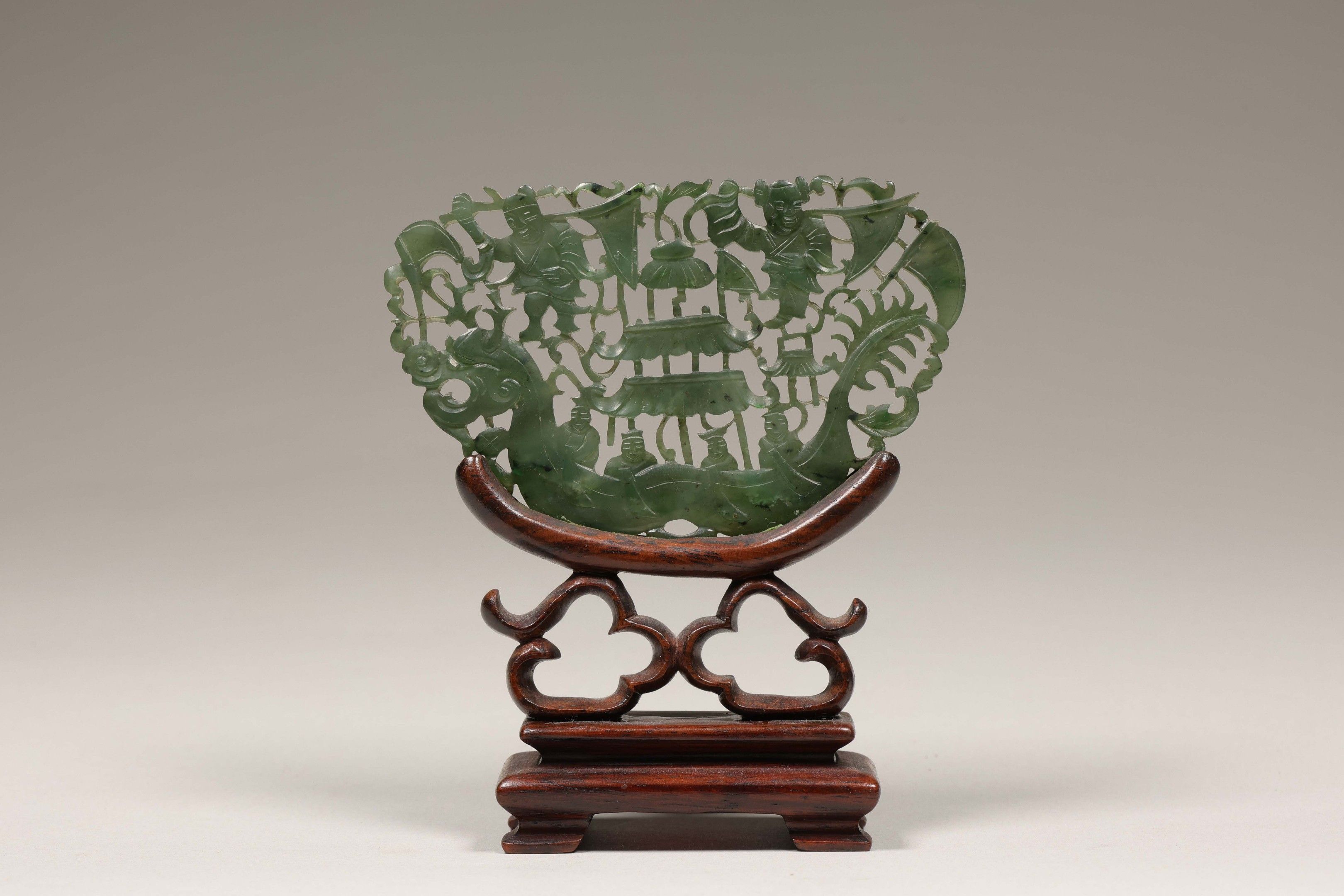 CHINA, 19th century Spinach jade plaque with openwork decora…