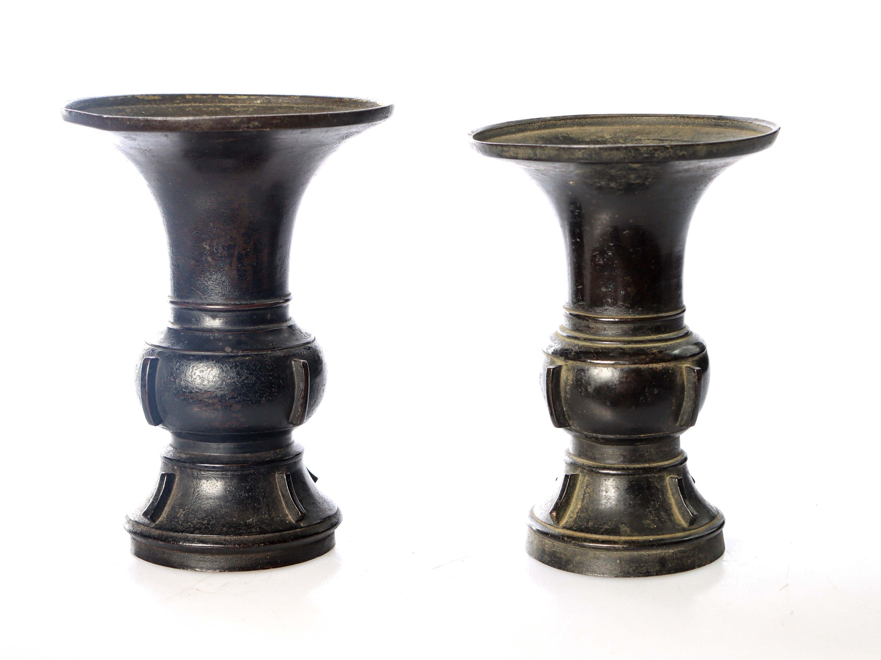 CHINA, 19th century Set of two "gu" shaped vases in bronze w…