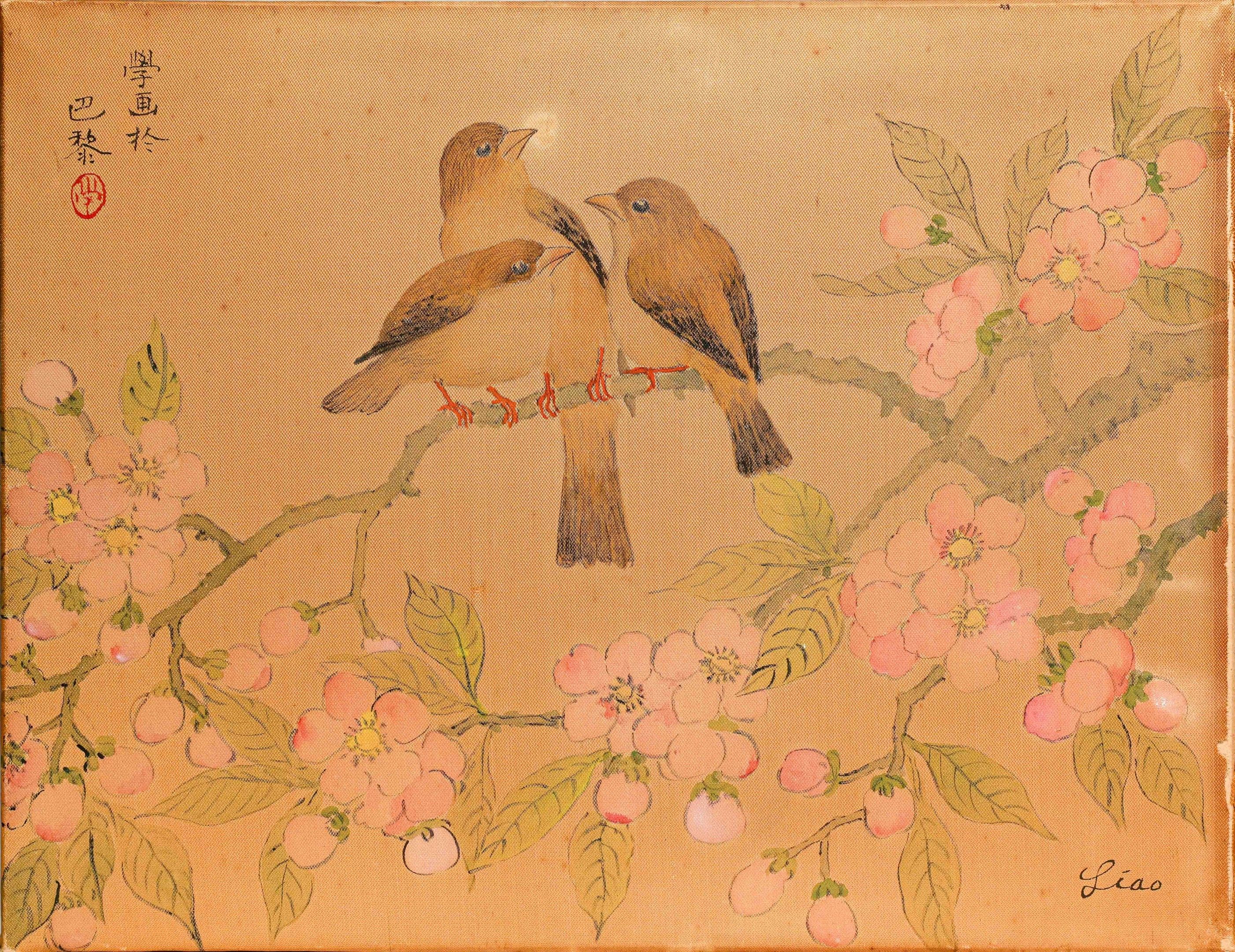 Liao Xinxue (1903-1958) "Three sparrows on a branch of prunu…