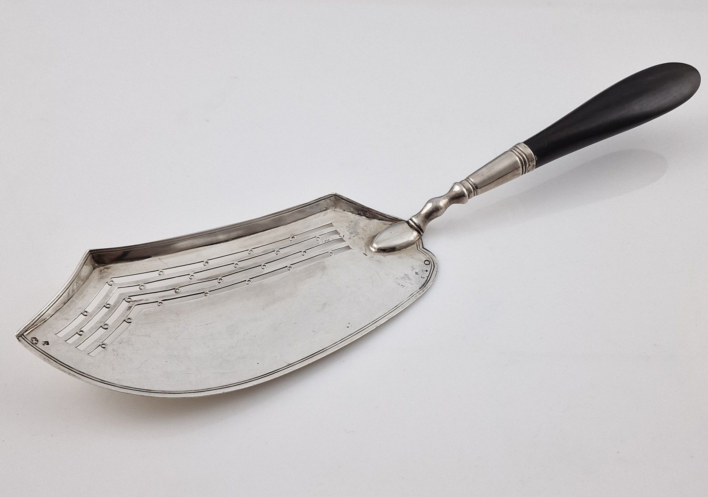 The pierced spatula is decorated with fillets and pearls
