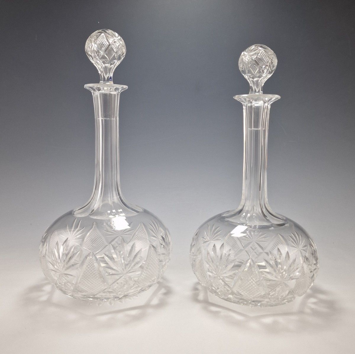 VAL SAINT-LAMBERT - BERNCASTEL MODEL - TWO CARAFES OF TWO SIZES in cut white crystal - Belgium, Early 20th Century