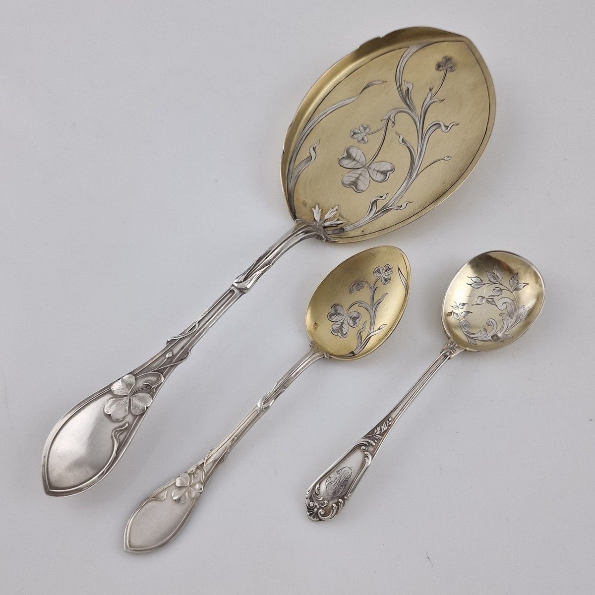 13 PIECES ICE SERVICE in silver and vermeil Minerve 950 Millièmes d'Epoque 1900 à déccor de trèfles