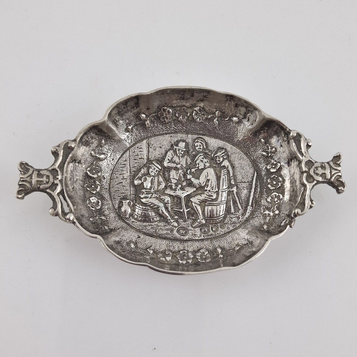 INDIVIDUAL TABLE ASHTRAY in the form of a poly-lobed bowl with ribs in 833 Millièmes silver - Netherlands 19th Century After 1814 with repoussé decoration of a 17th Century tavern scene