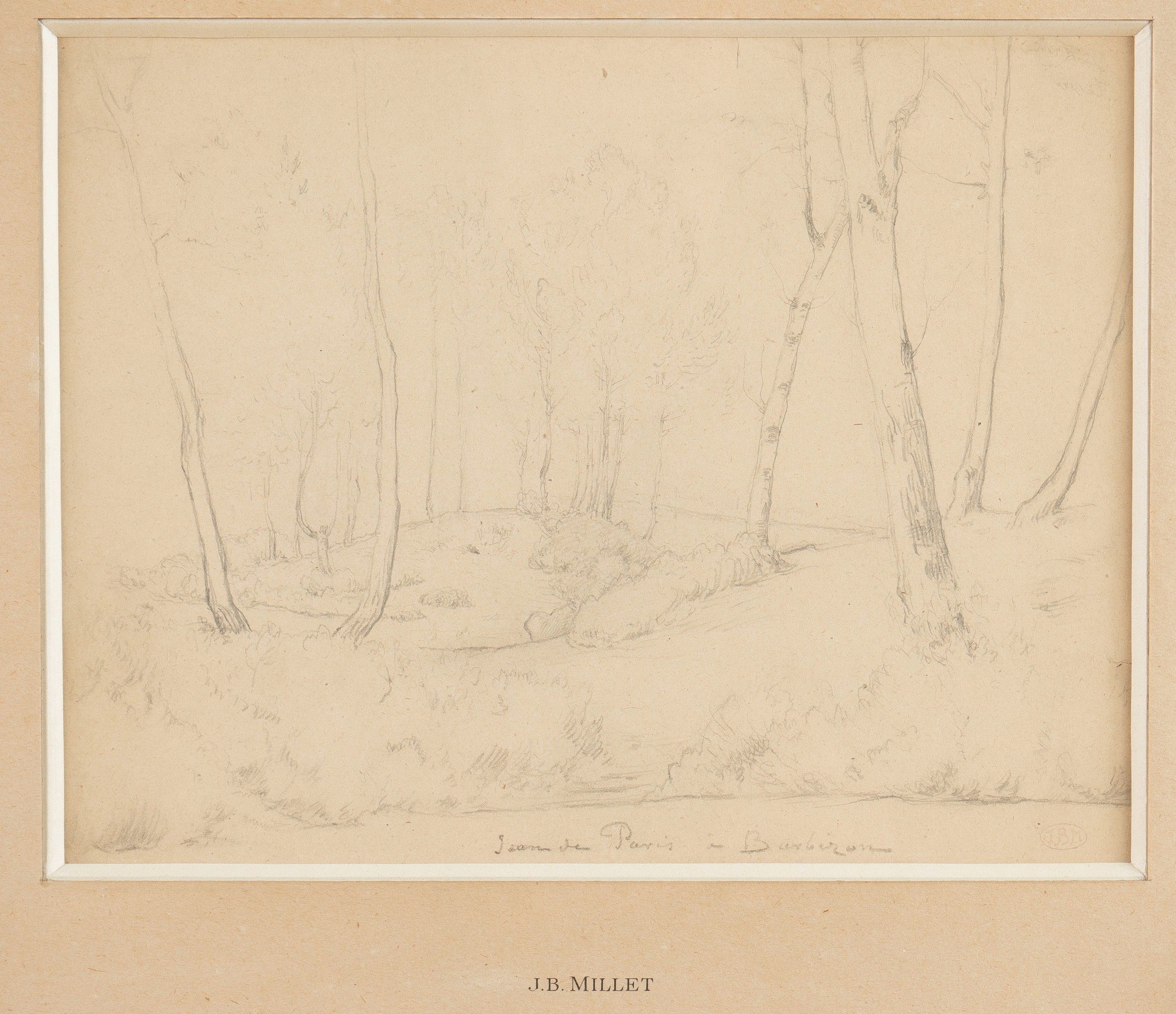 Sous bois à Barbizon, Pencil on paper bearing an inscription "Jean de Paris à Barbizon" and studio stamp