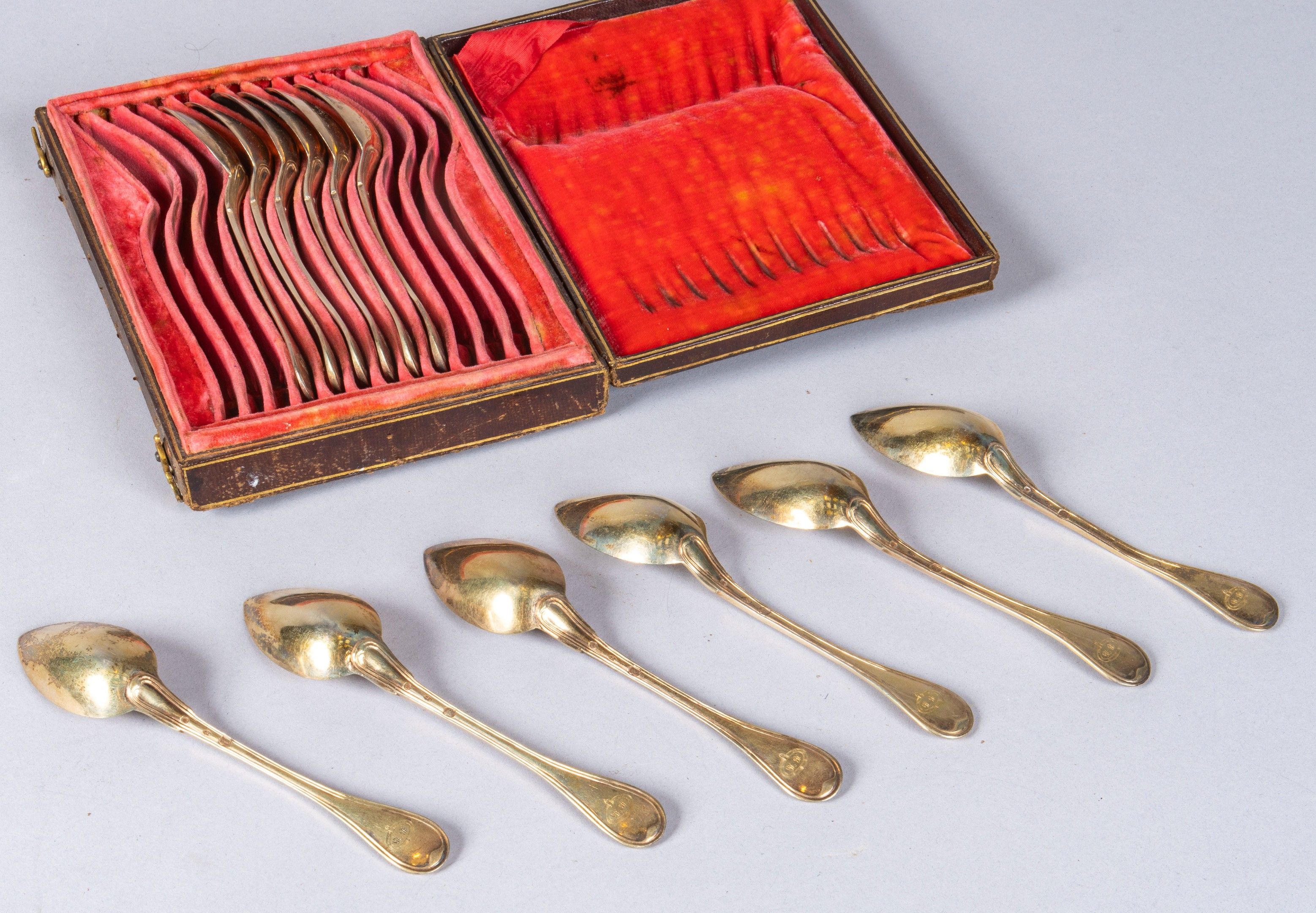 Set of 12 small spoons in vermeil of the filets design, the spatulas figured