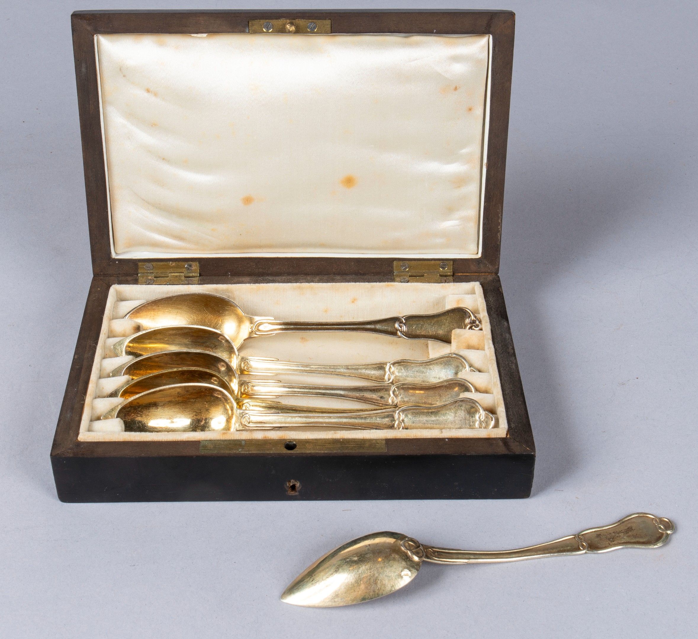 Set of 6 small spoons in vermeil 800/°°° decorated with knotted fillets