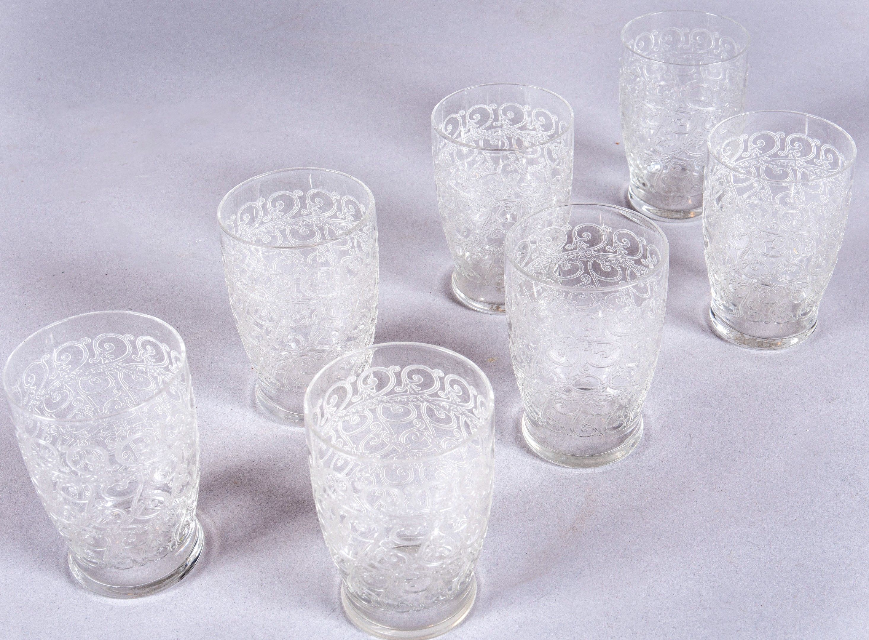 Suite of 7 Rohan cut crystal liqueur tumblers