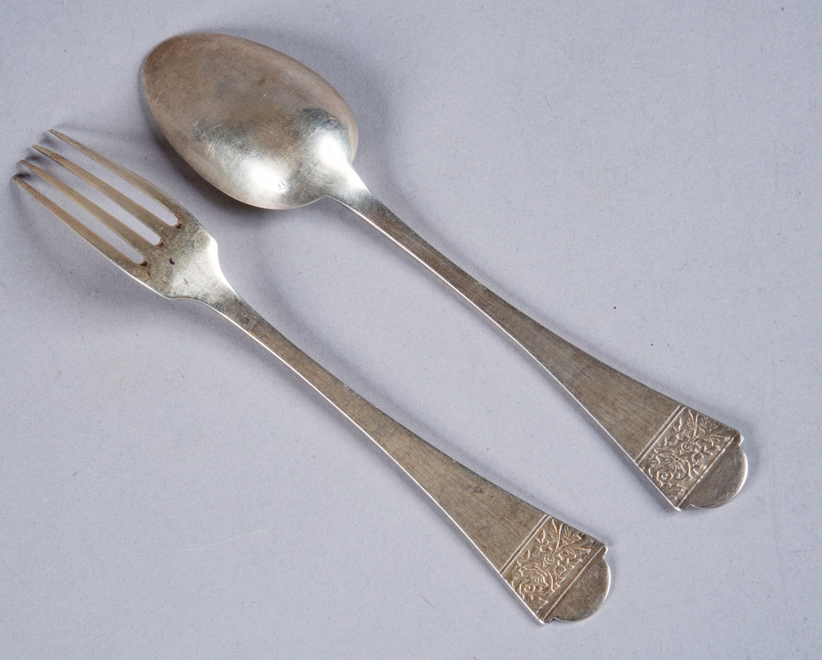 925/°°° silver baptismal flatware, the spatula engraved with a frieze of flowers