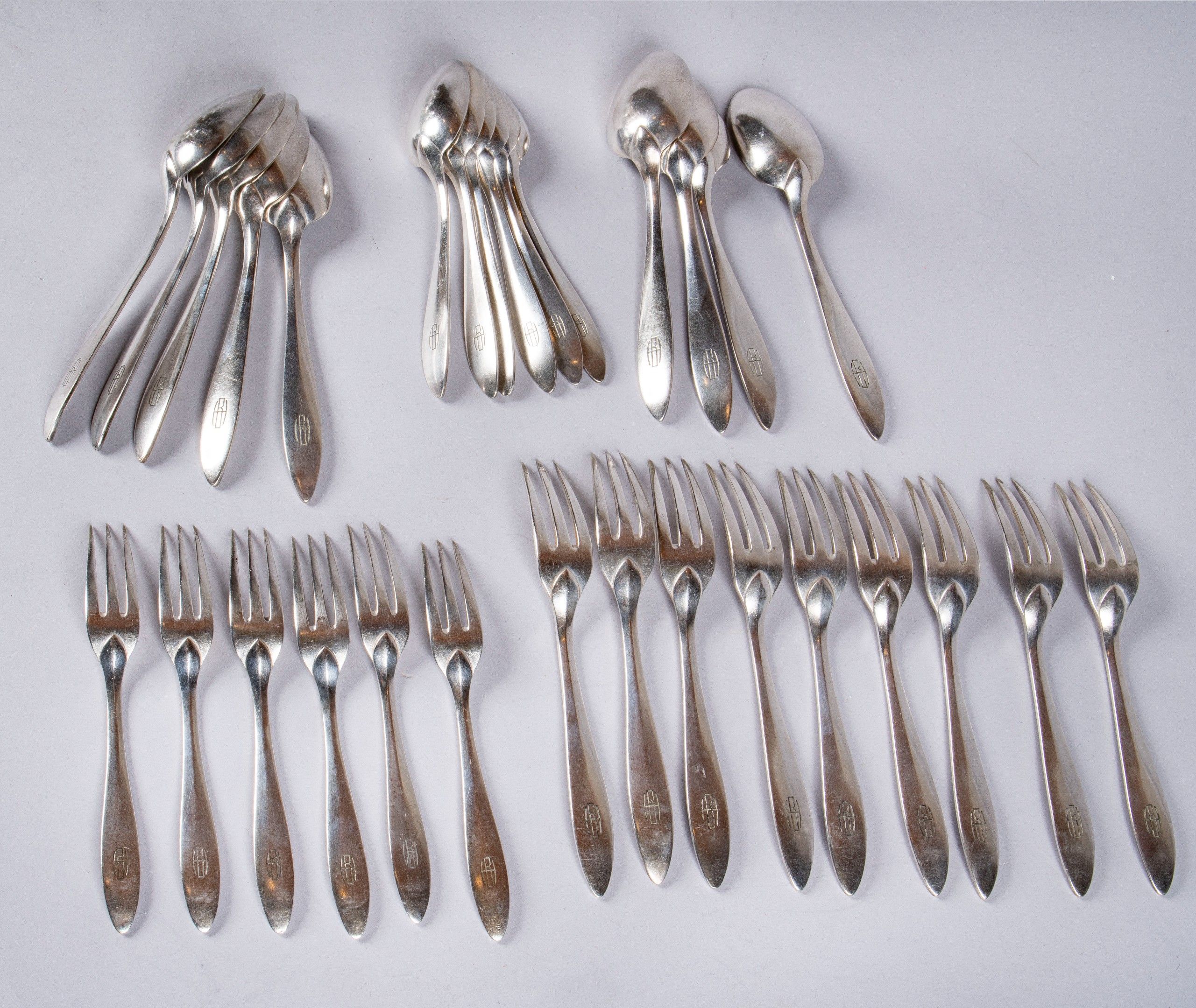 Christofle, Set of silver plated cutlery including 9 pieces of tableware, 6 pieces of dessert cutlery - Art Deco style work