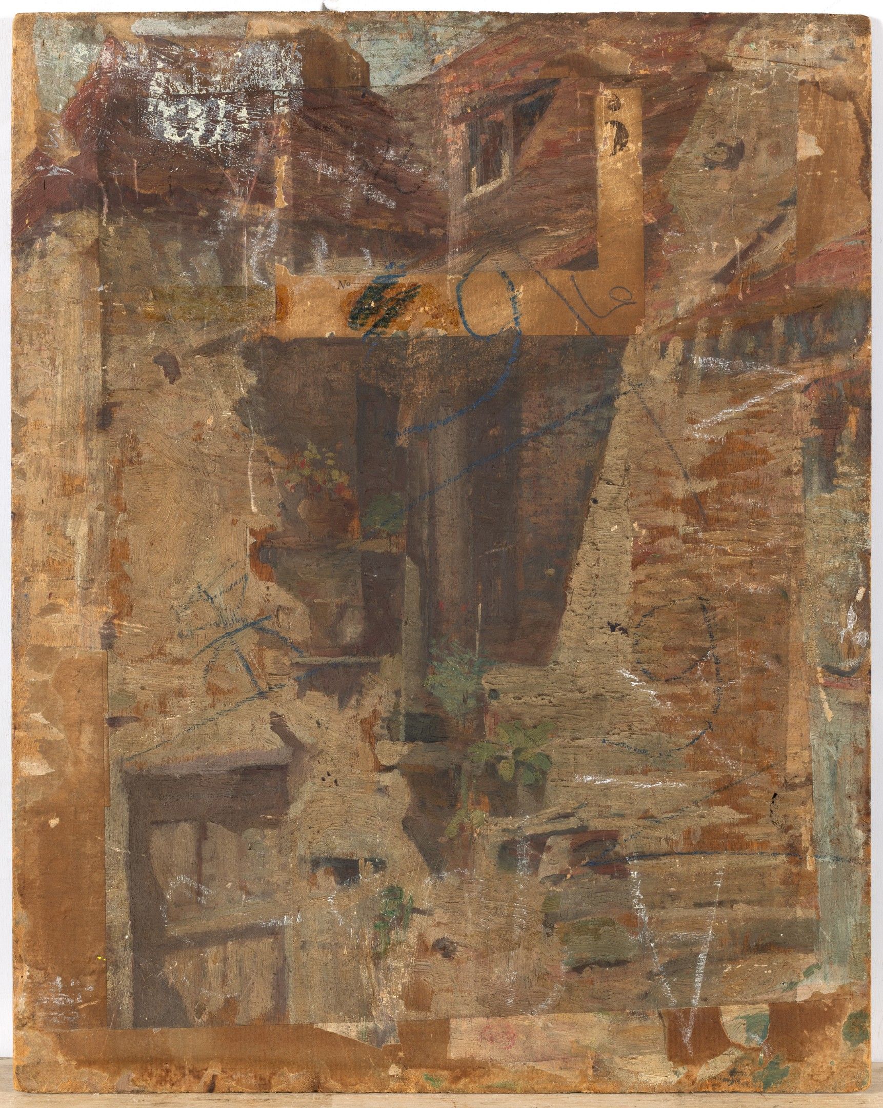 Oil on panel, signed with the artist's monogram lower left, a study of houses on the reverse