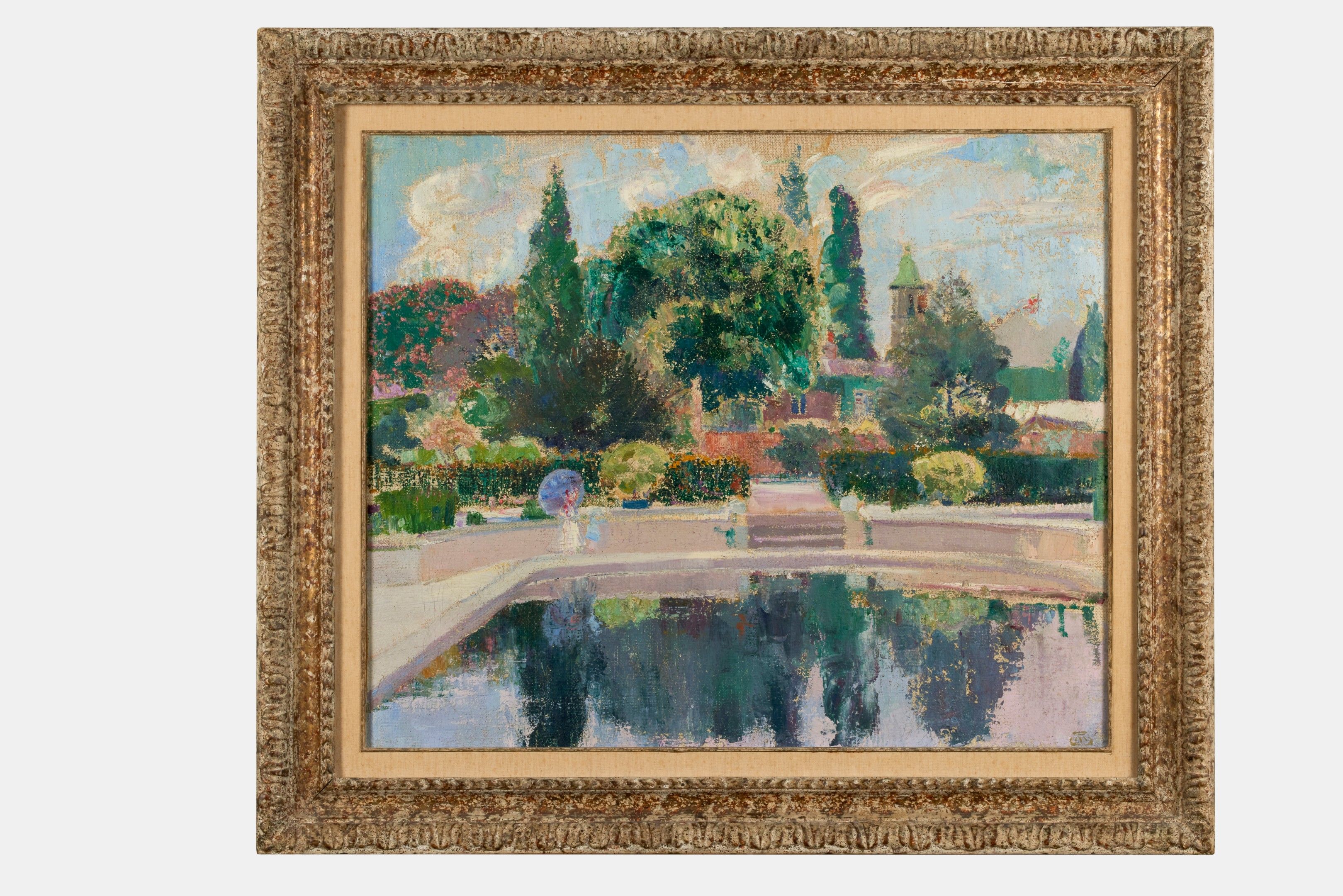 Oil on lined canvas, signed with the artist's monogram lower right, titled on an old label on the stretcher