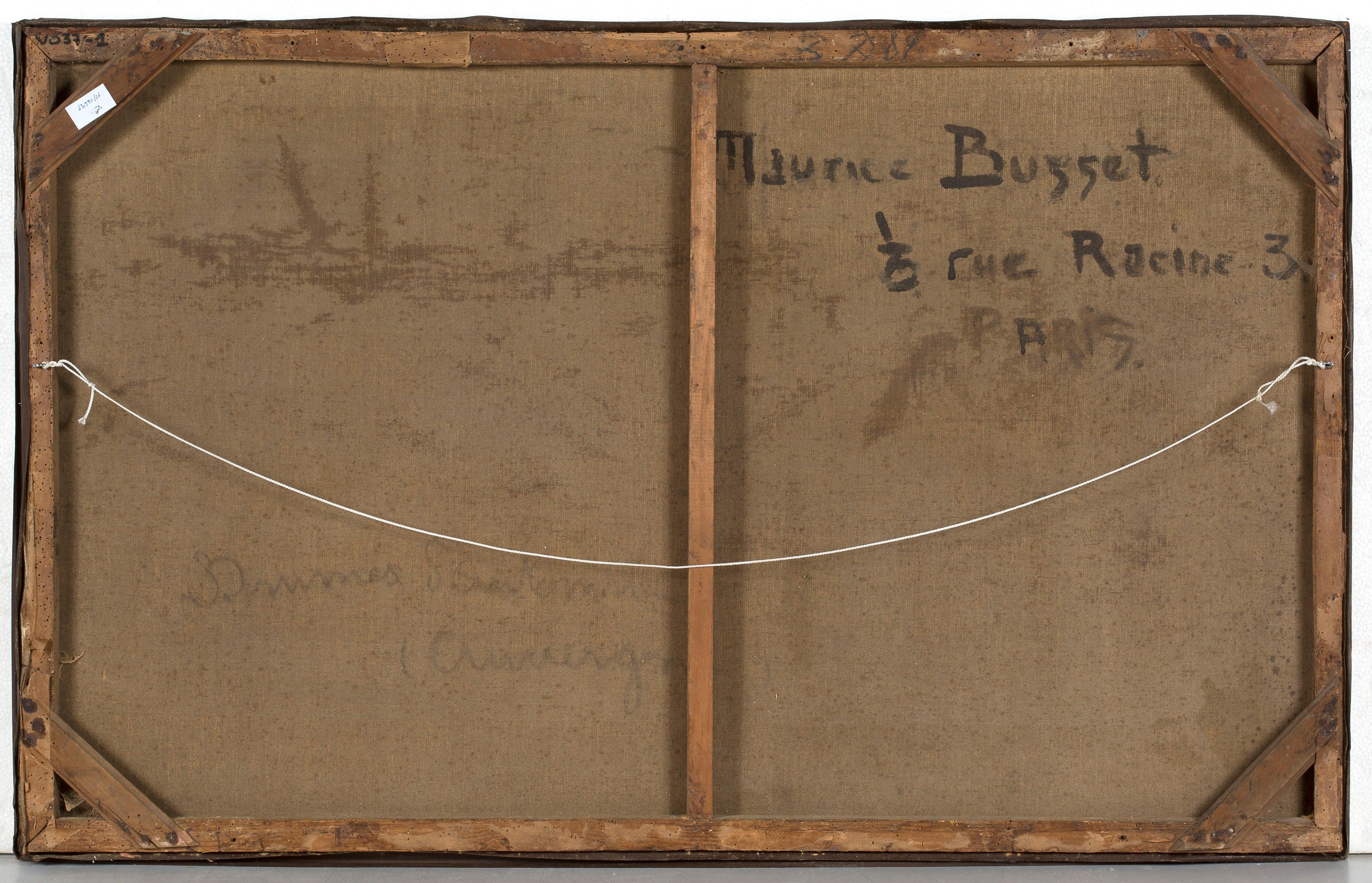 Oil on canvas, signed and dated '193[1?]' lower right, titled and signed again with Maurice Busset's address 'rue Racine 3/Paris' on the reverse