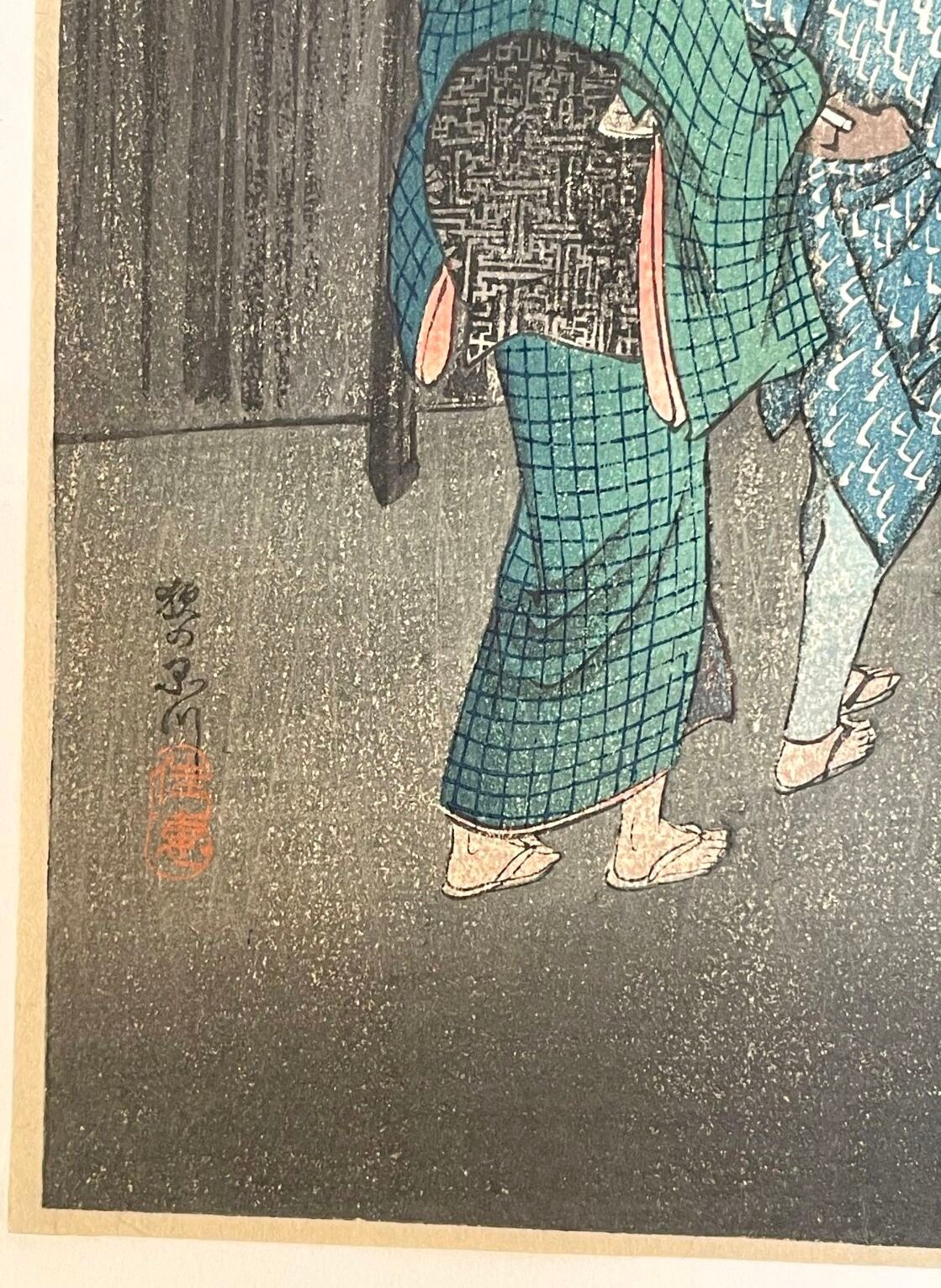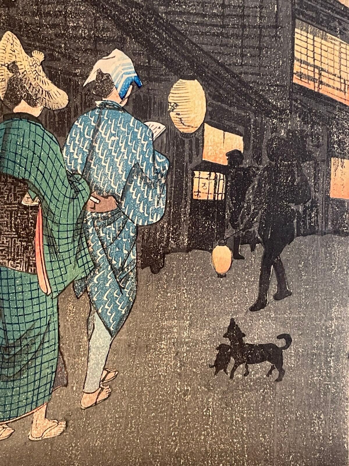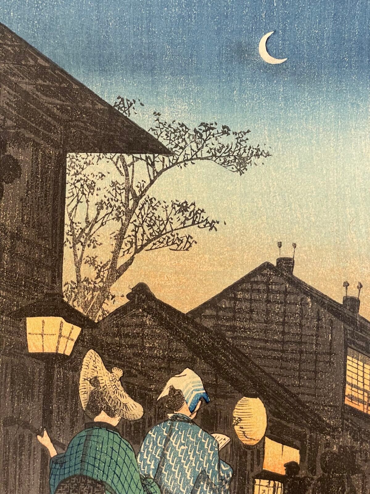 Print, otanzaku tate-e, Shinaga no yoru (品川の夜) Evening in Shinagawa. Stamp of the artist Yoshie. Publisher Watanabe Shōzaburō. Circa 1920.