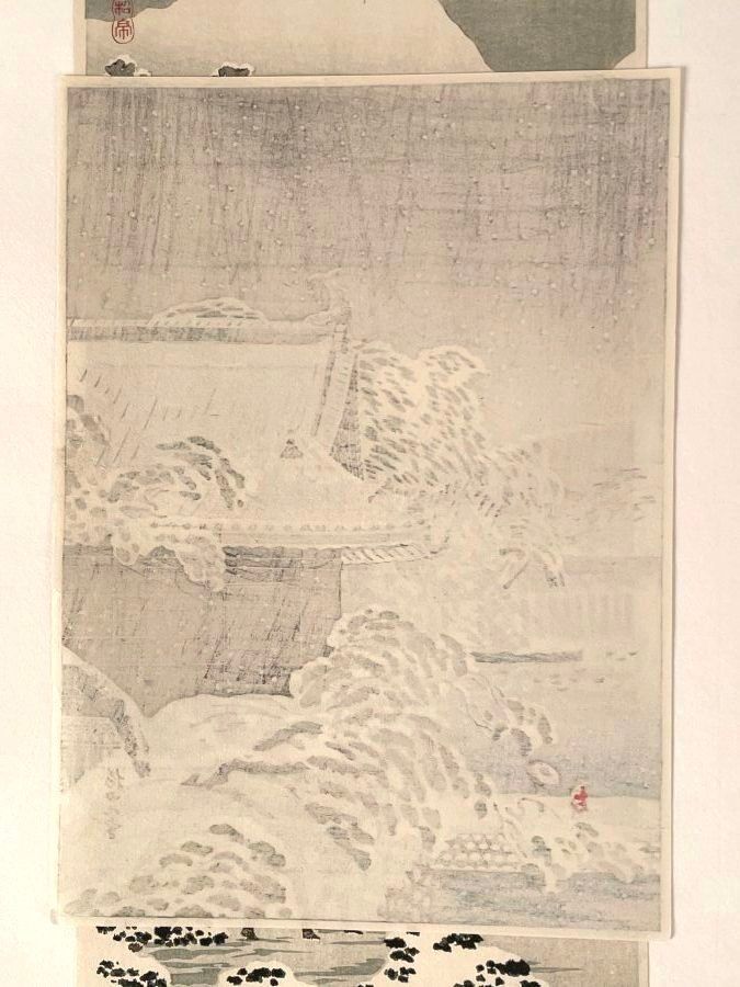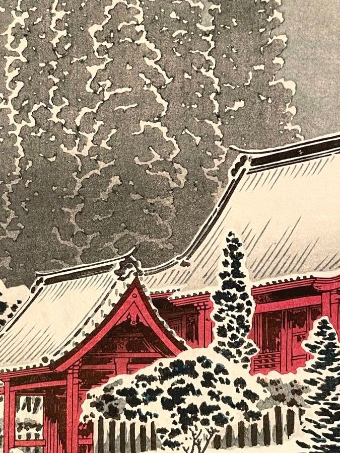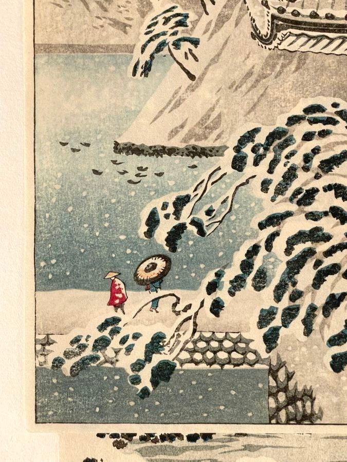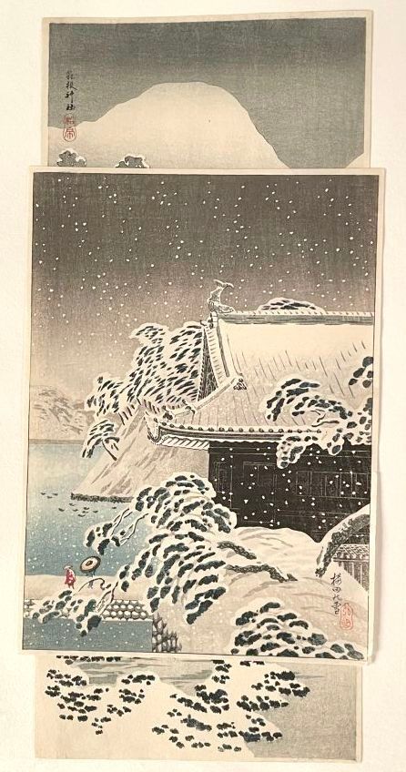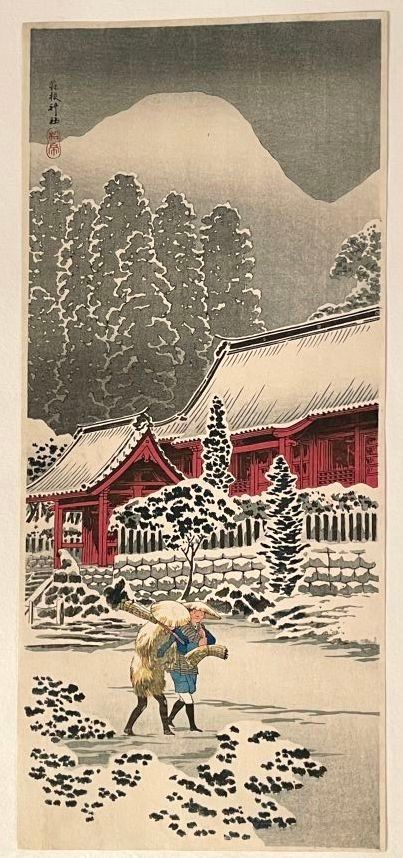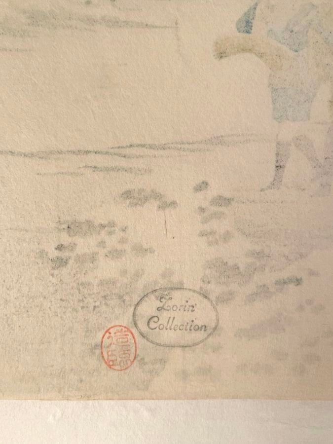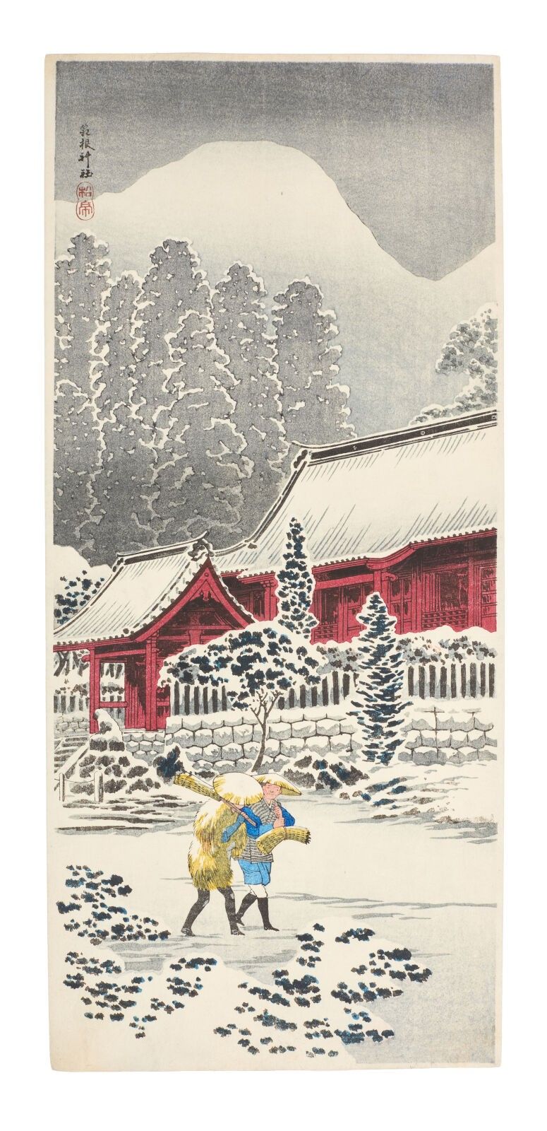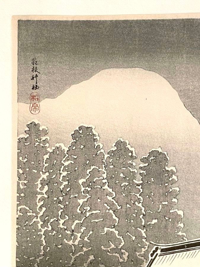 - Otanzaku tate-e, Hakone jinja board (箱根神社) Shrine in Hakone. Stamp of the artist Shotei. Publisher Watanabe Shōzaburō. On the reverse, stamped "Lorin Collection" and stamped "造臨". Circa 1936.