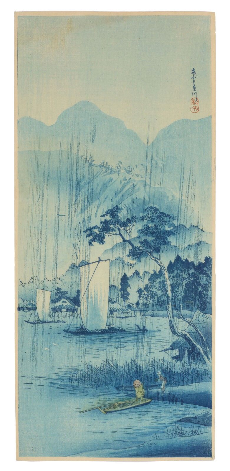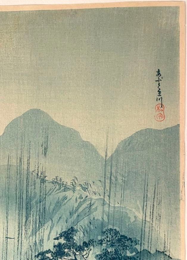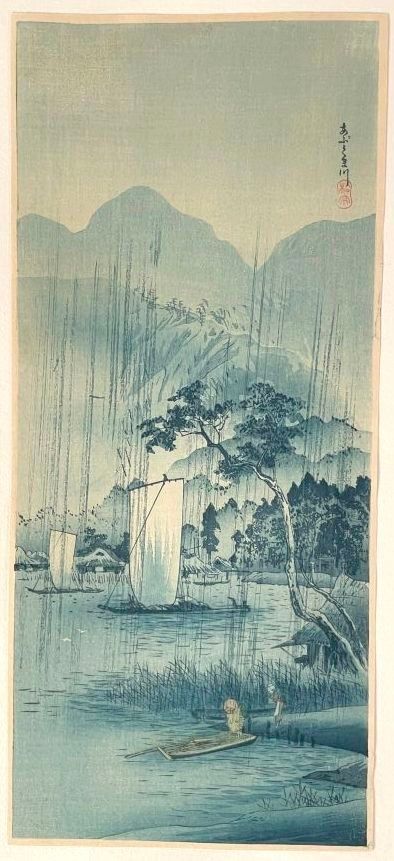 Print, otanzaku tate-e, Abukuma gawa plate (阿武隈川) The Abukuma River. Stamp of the artist Shotei.