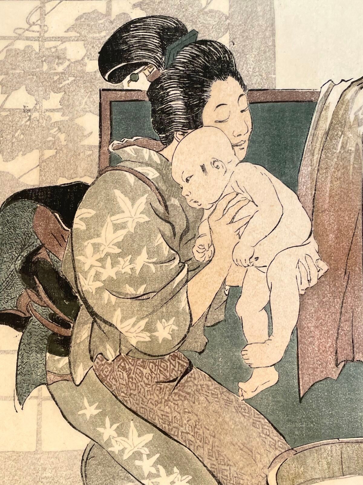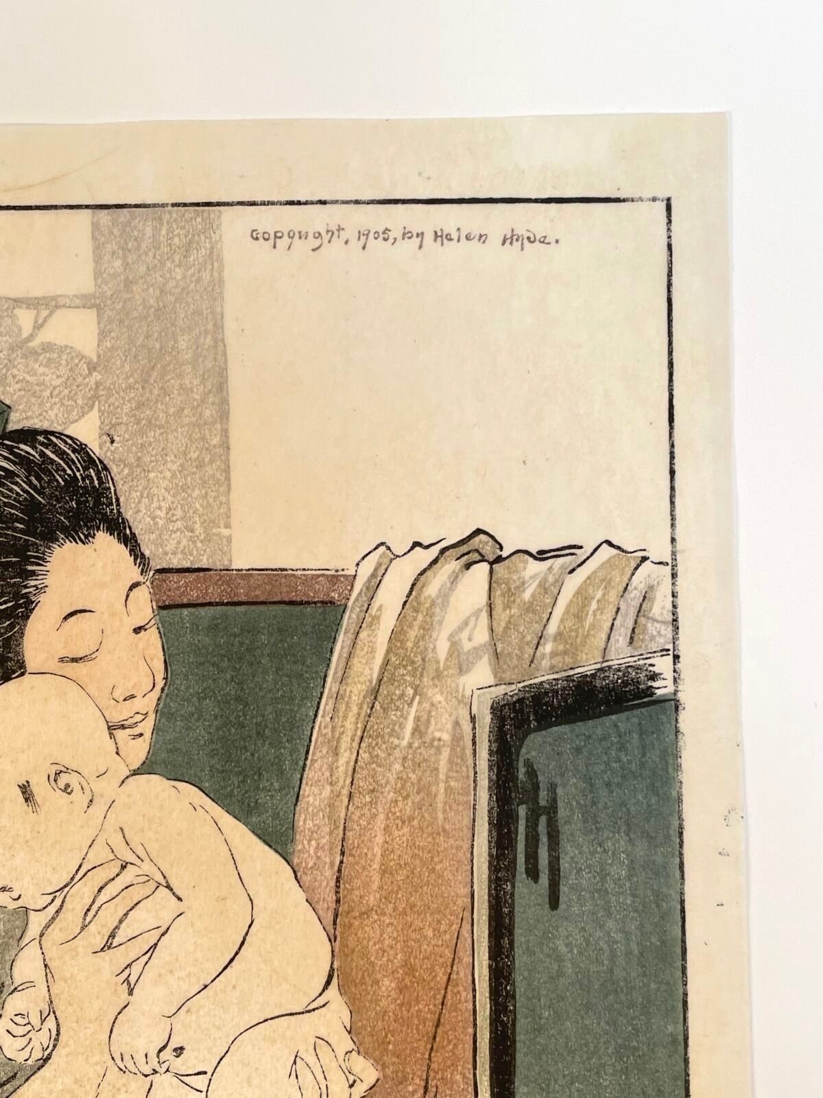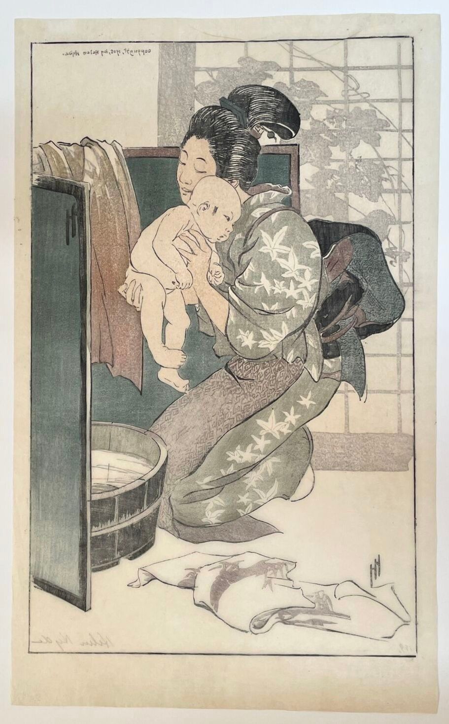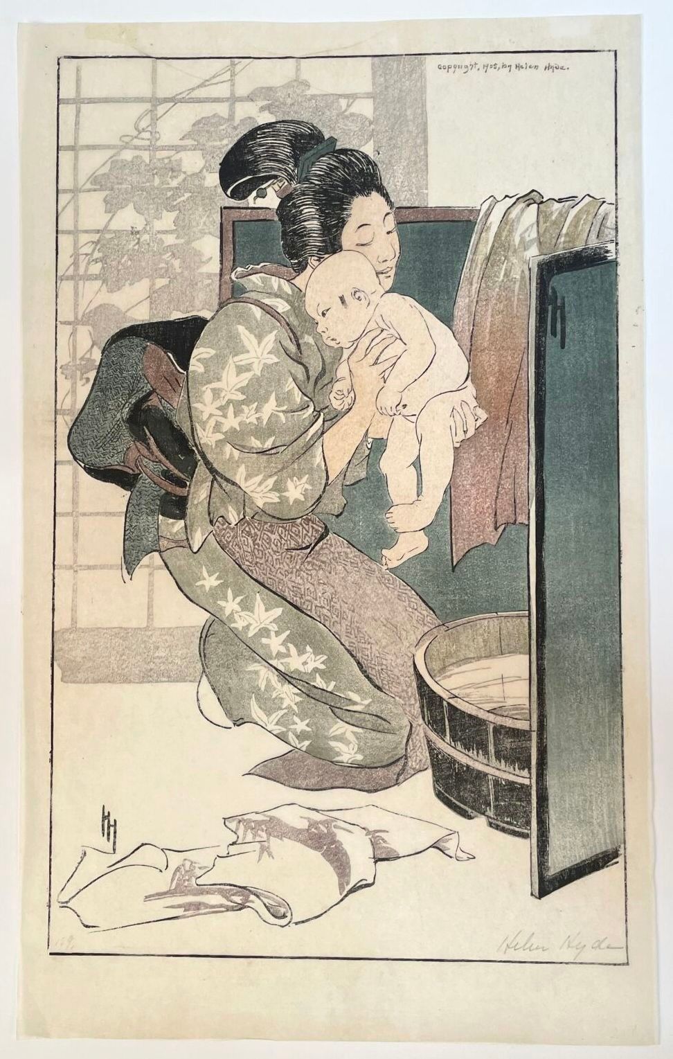 Print, The Bath. Signed in pencil in the plate Helen Hyde. 1905. On tissue paper.
