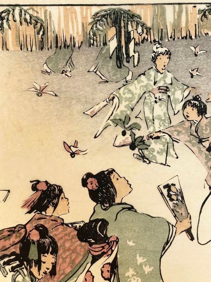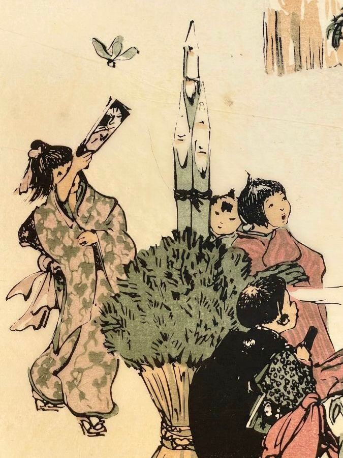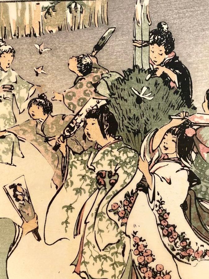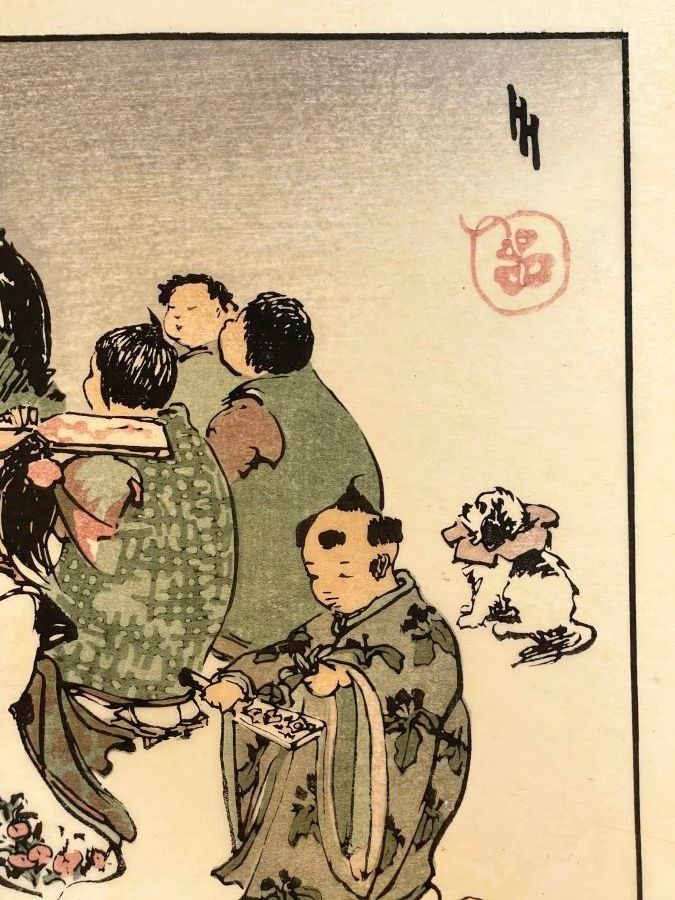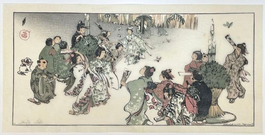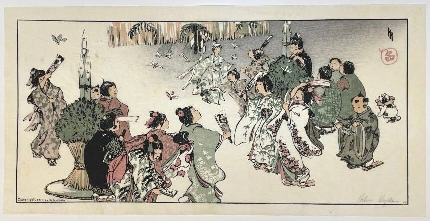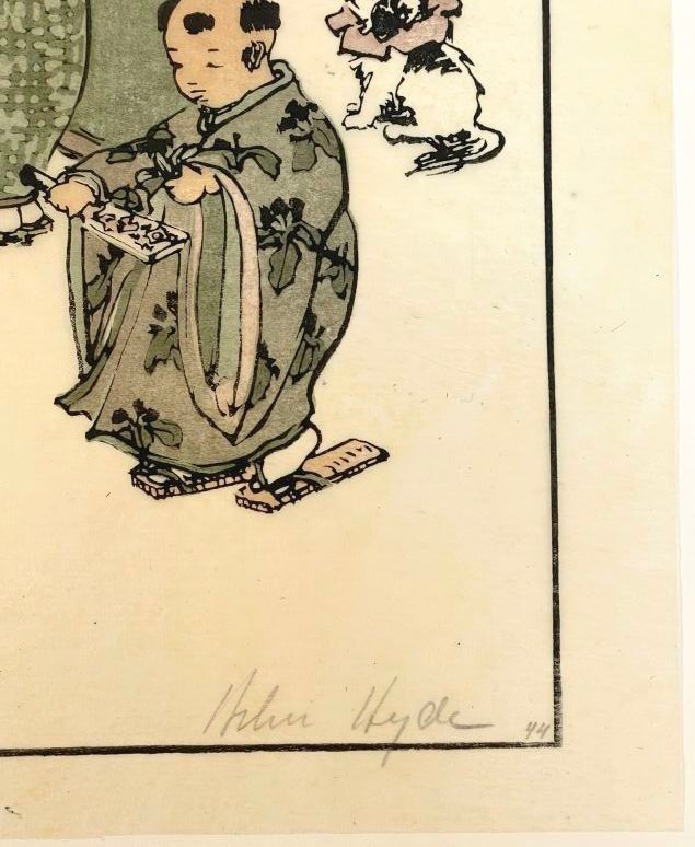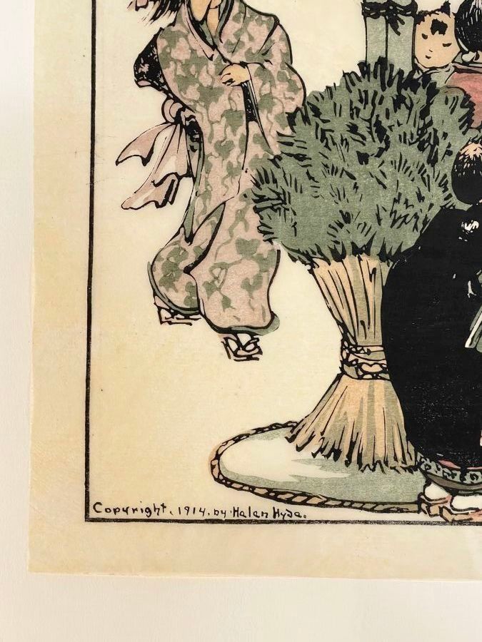 Print, New Year's Day in Tokyo. Signed in pencil in the plate Helen Hyde, with a pencil number "44". 1914.