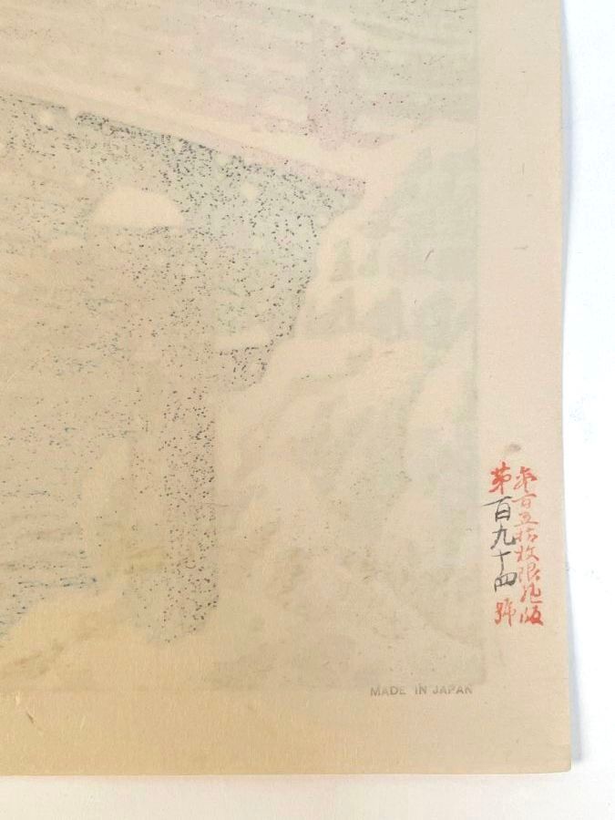 This print was probably made by Baba Nobuhiko before the Second World War and marketed by the Kyoto Hanga-In company in the 1950s for a foreign audience.