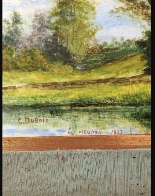 C. DUBOIS Oil on porcelain "Landscape at Meudon" .