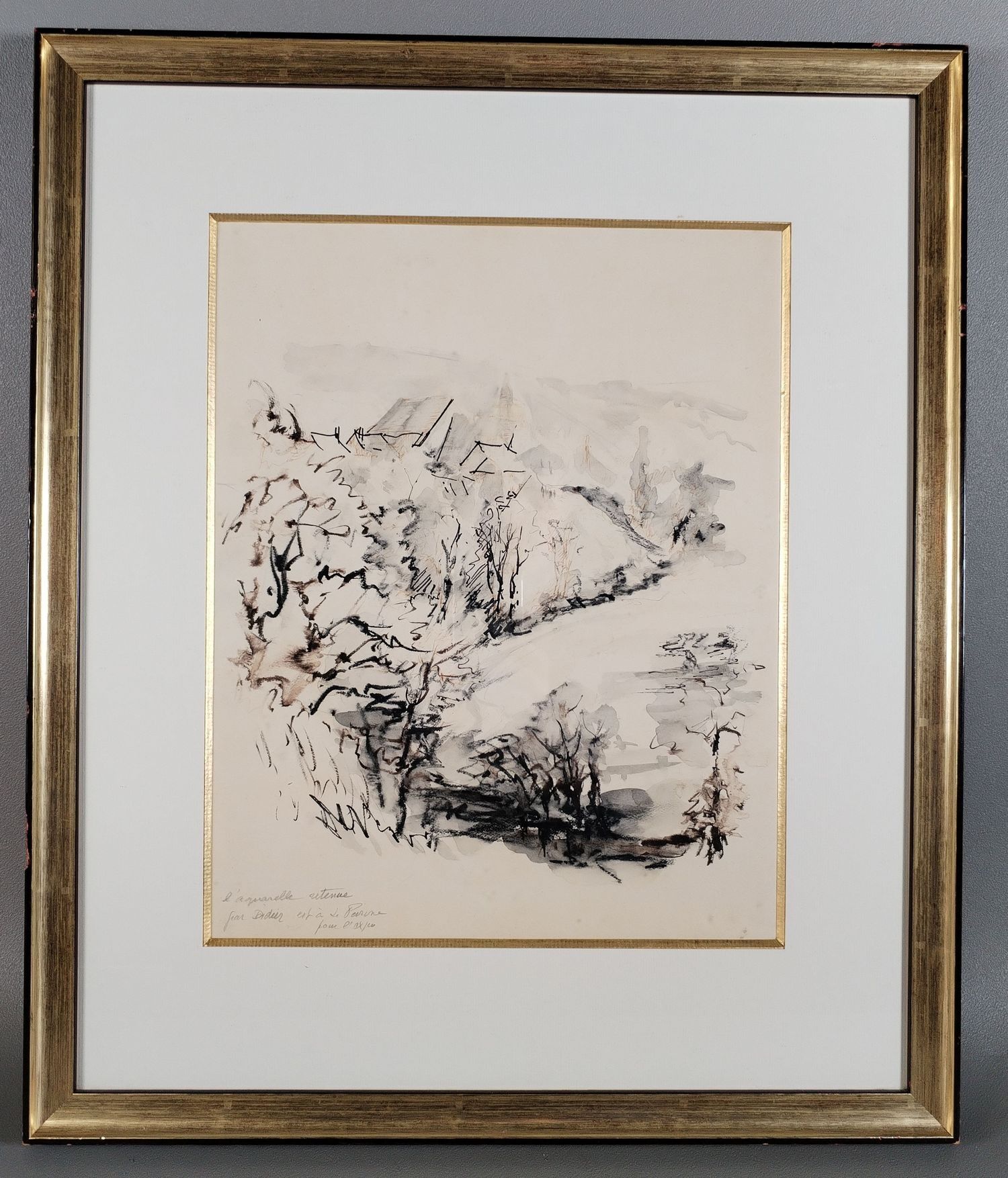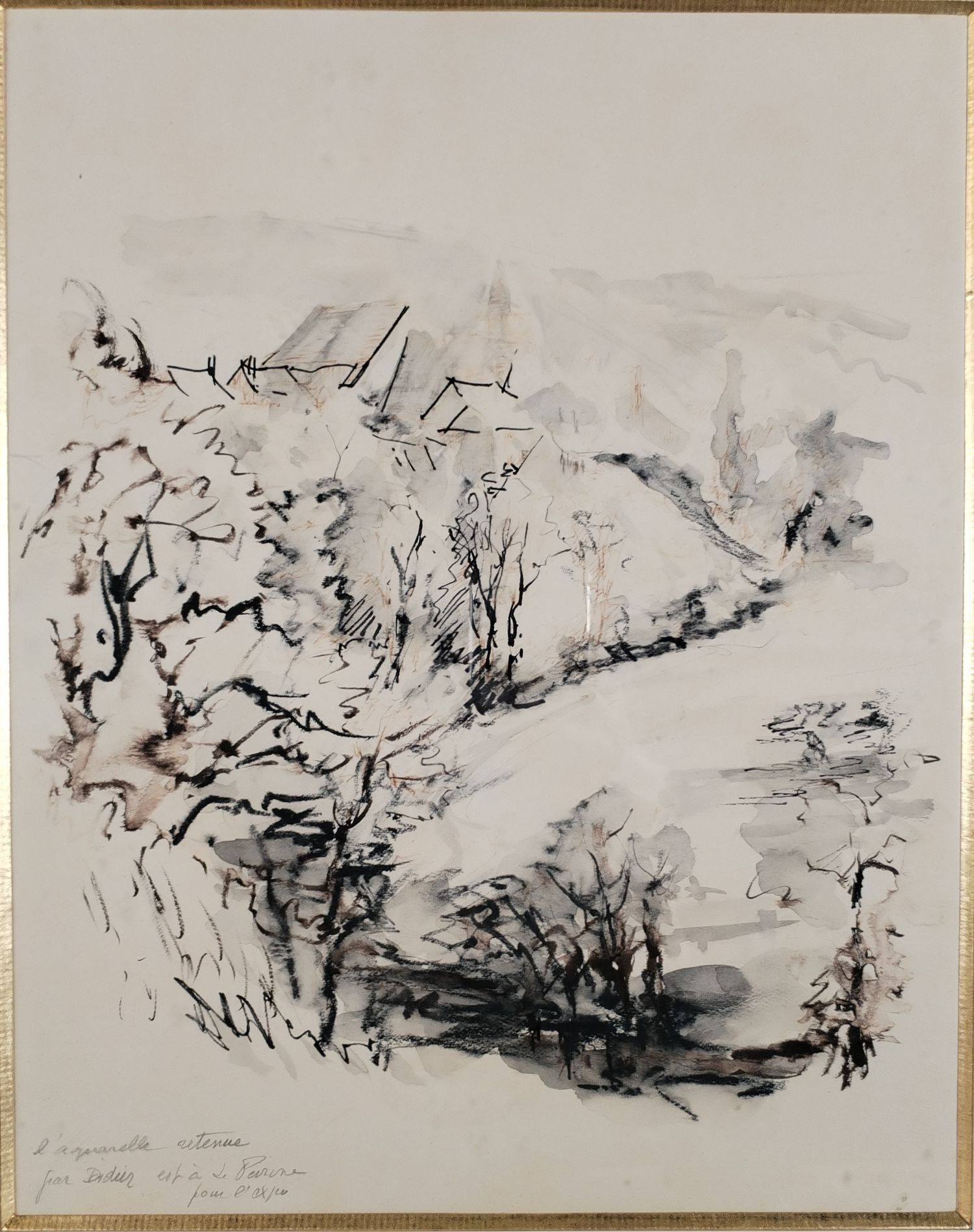 In Bg handwritten mention: "l'aquarelle retenue/pour Didier est à la Perrine/pour l'expo".