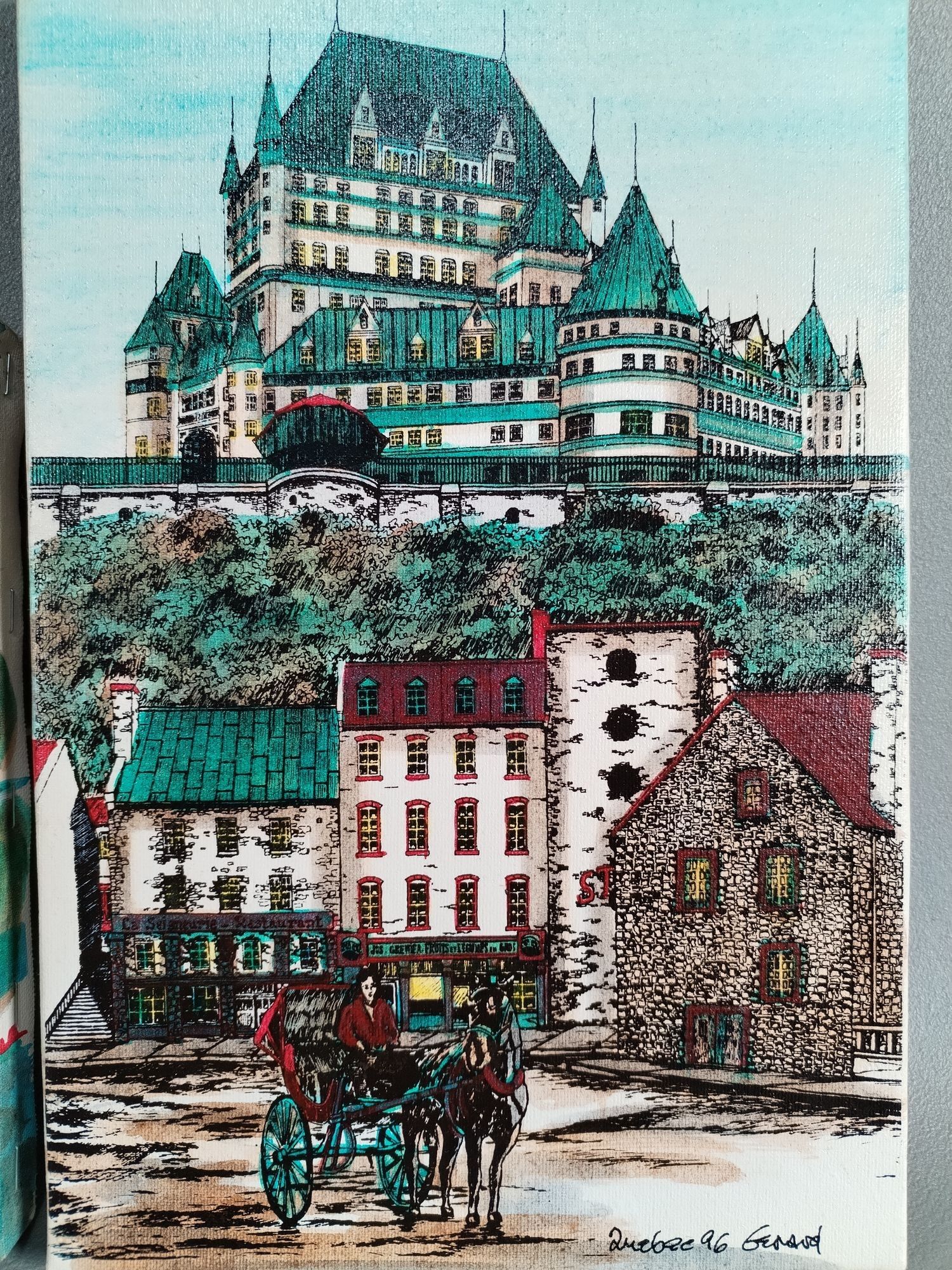 "View of the Château Frontenac in Quebec City with Sailboat and Carriage".