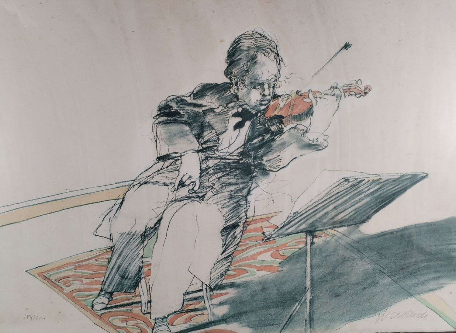 "Seated violinist