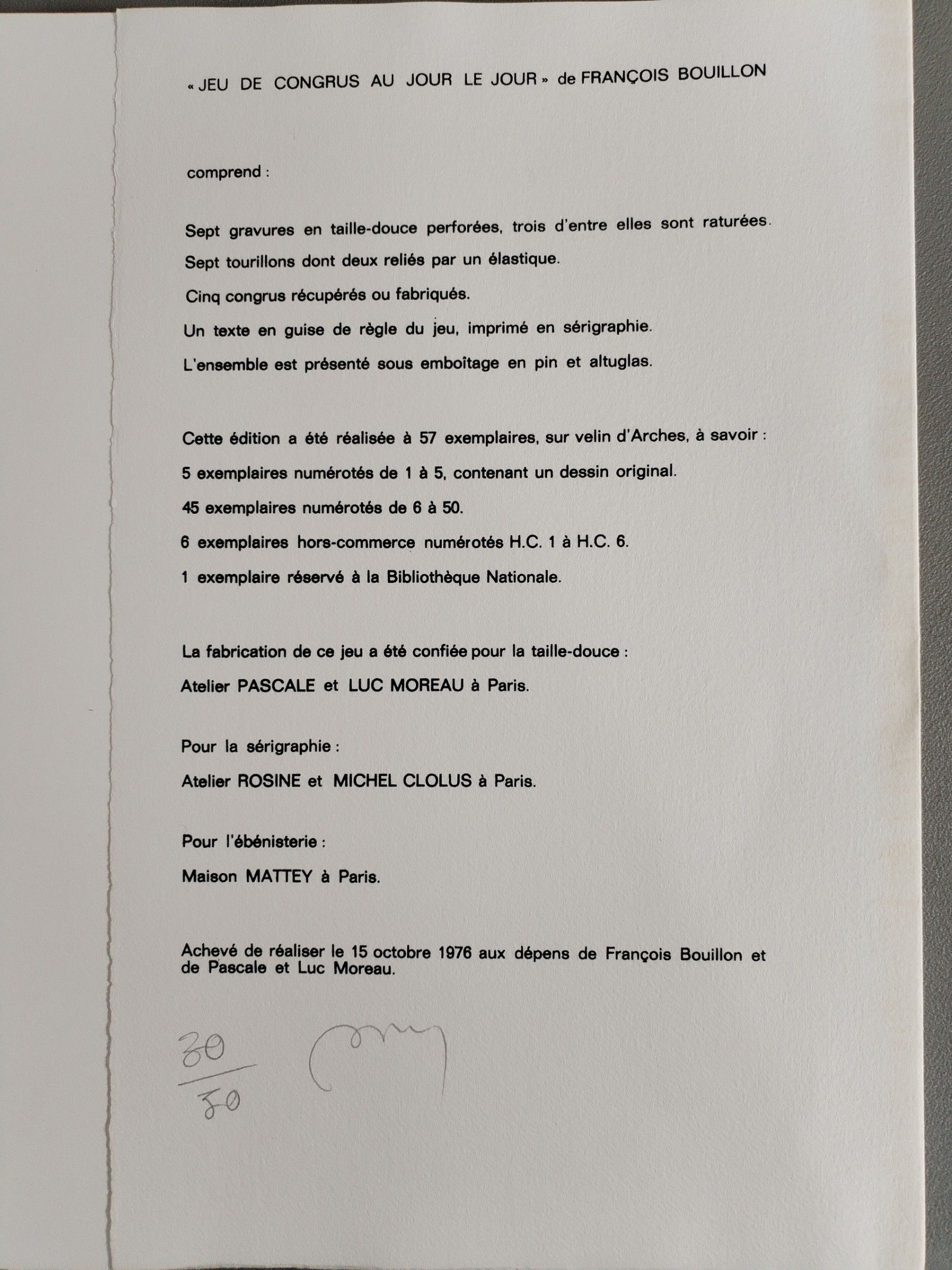 François BOUILLON (1944- ). "Jeu de congrus au jour le jour"…