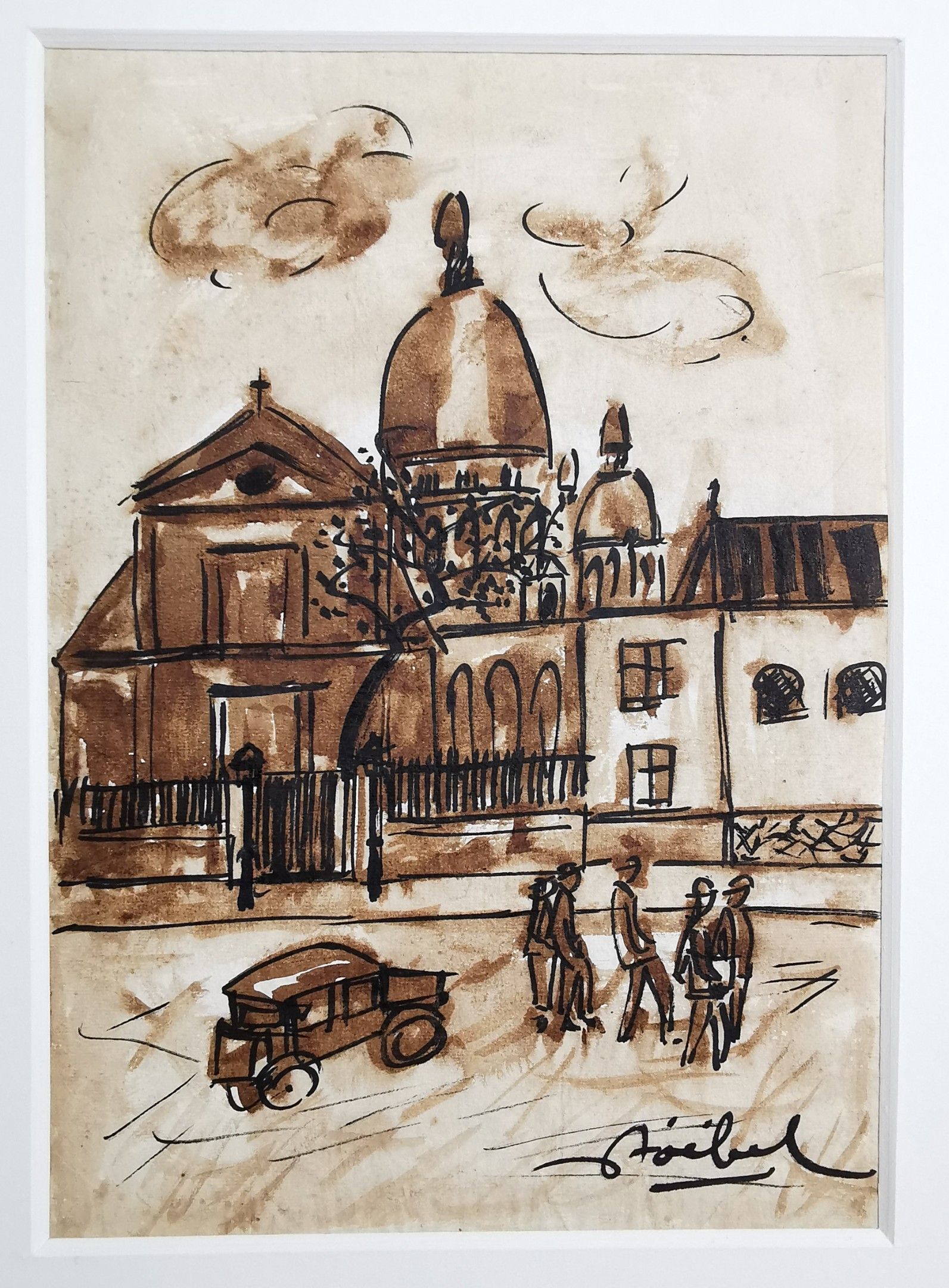 Edgar STOEBEL (1909-2001) "Montmartre : Place du tertre in front of Saint Pierre church in Paris".