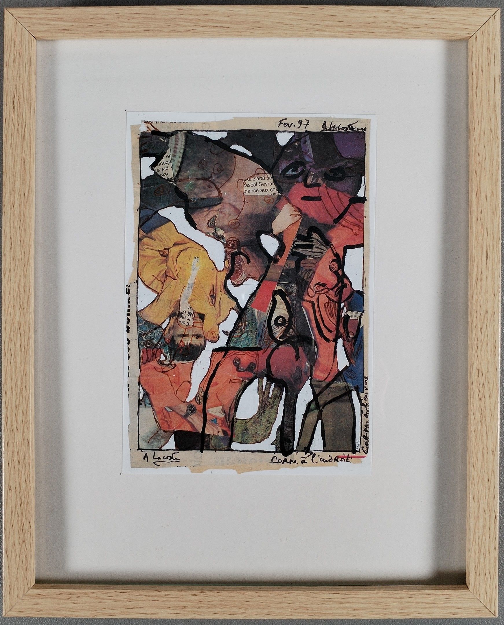 Alain LACOSTE (1935-2022). Horn forwards rope backwards. "Image détournée". Mixed media. Signed and dated February 97. 19 x 13 cm