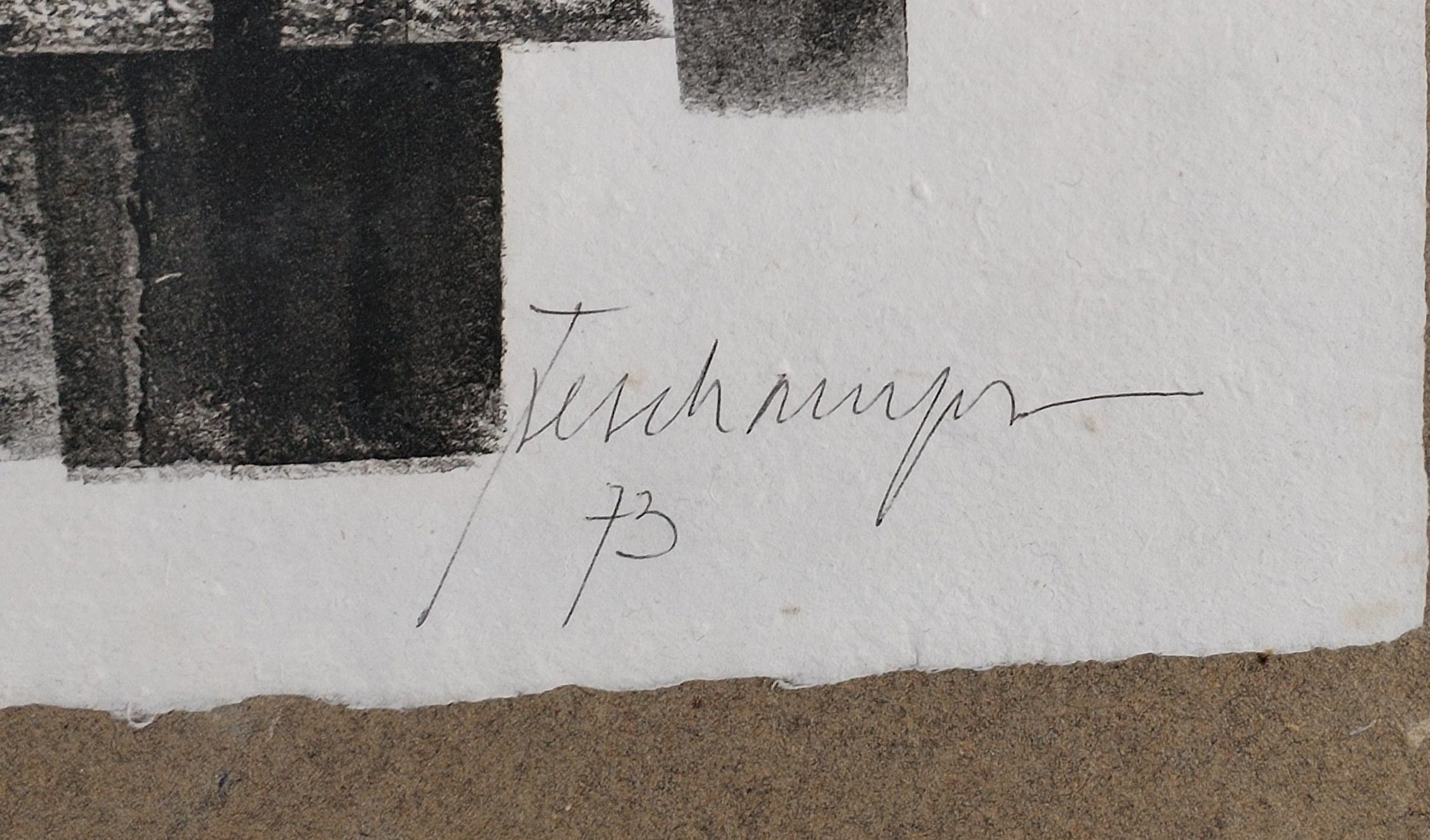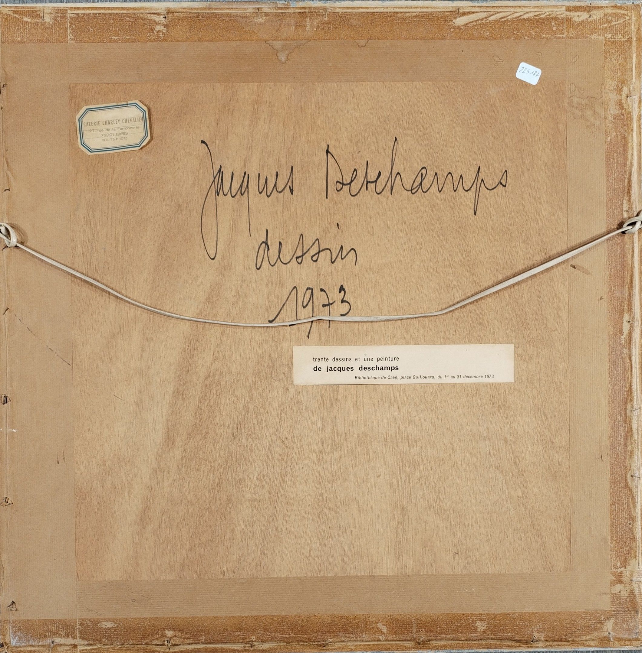 Signed lower right and dated 73. Label on verso "bibliothèque de Caen 31 peintures", "galerie Charley Chevalier 27 rue de la ferronnerie 75001".