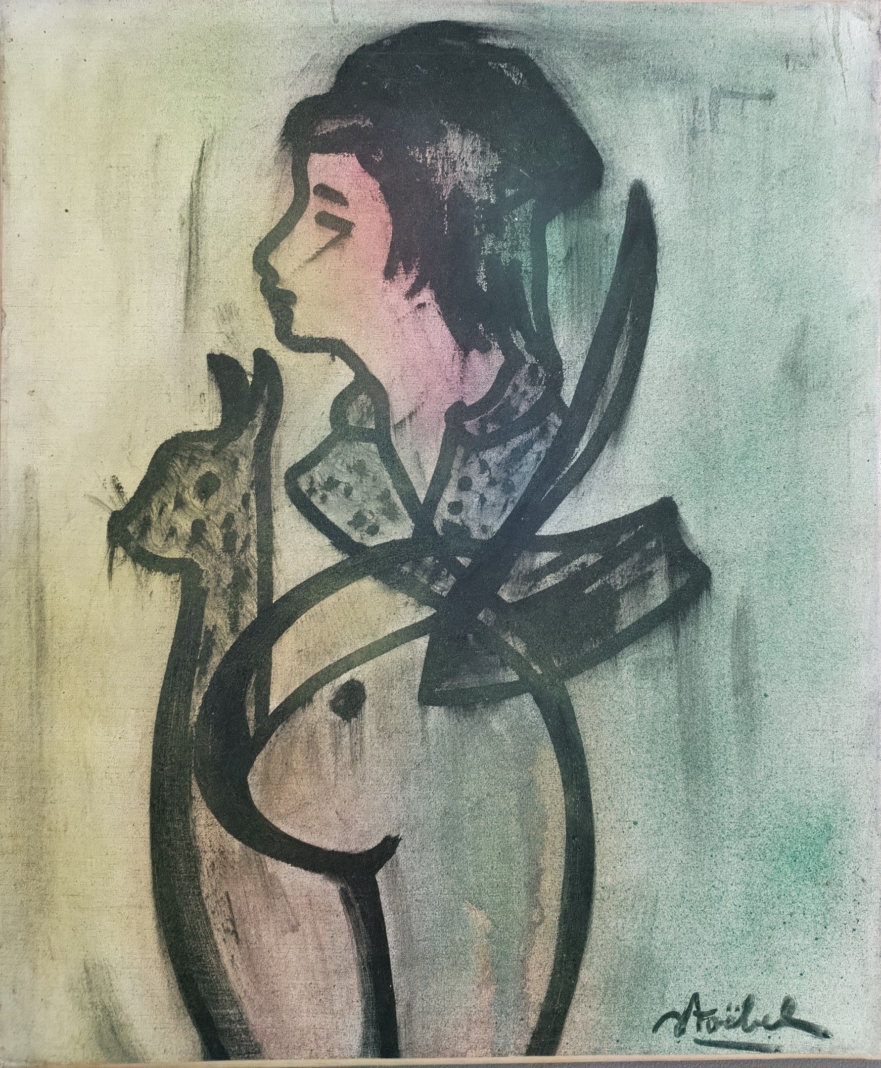 Edgar STOEBEL (1909-2001) "Portrait of a woman with animals".