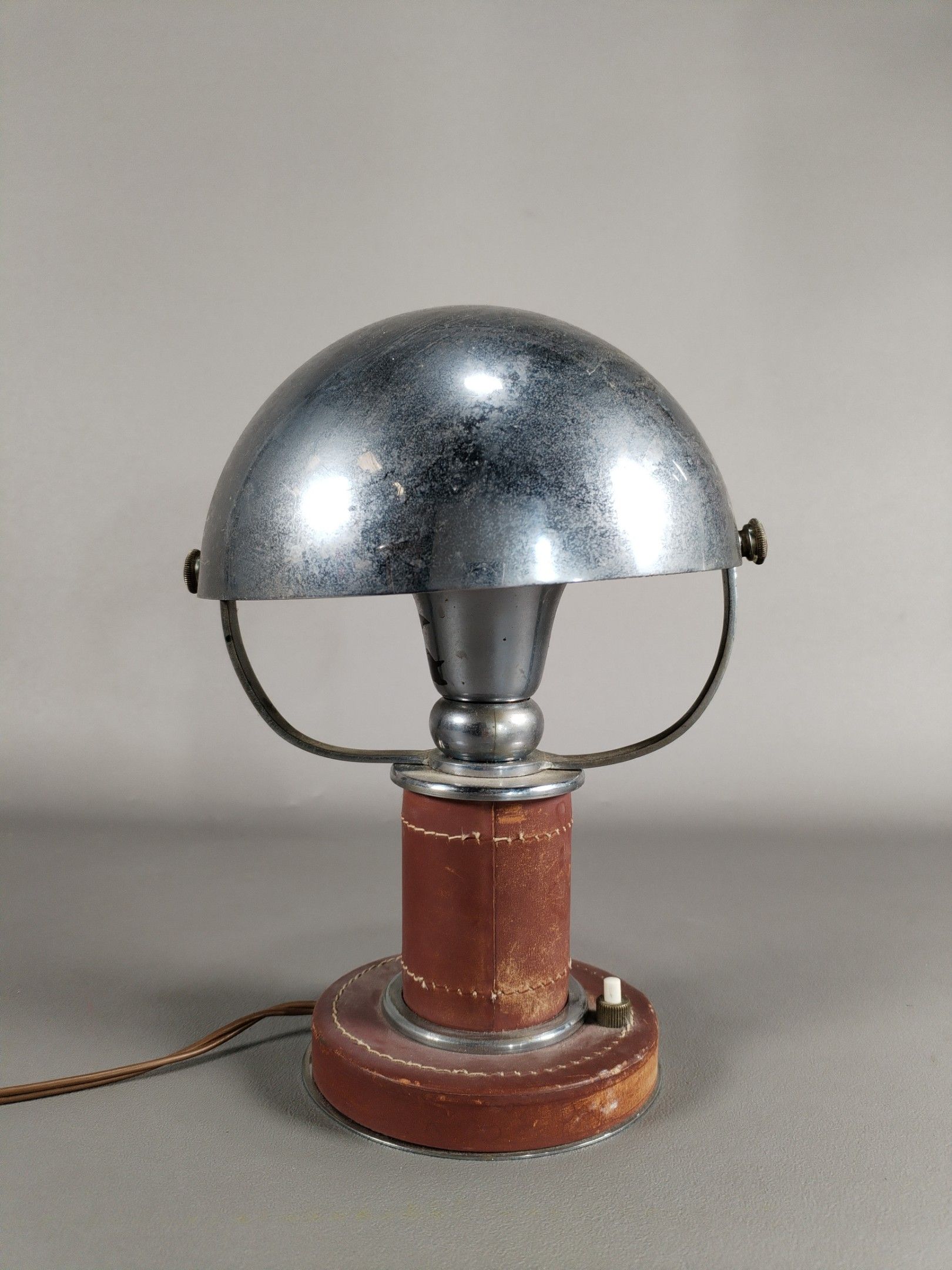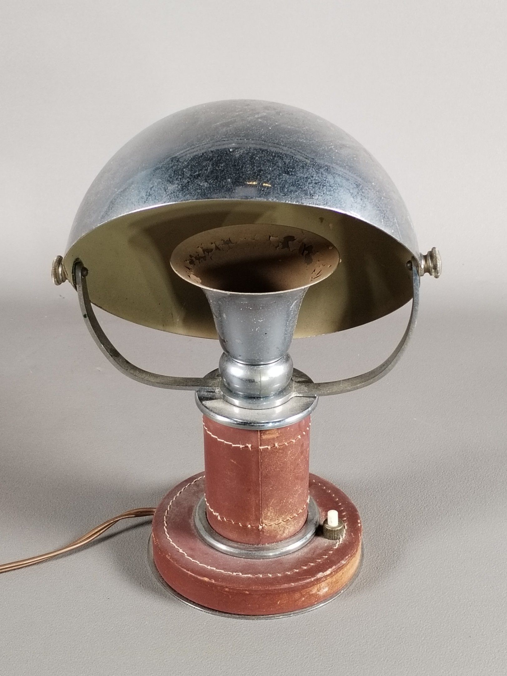 Saddle-stitched leather-covered aluminium desk lamp, Art Dec…