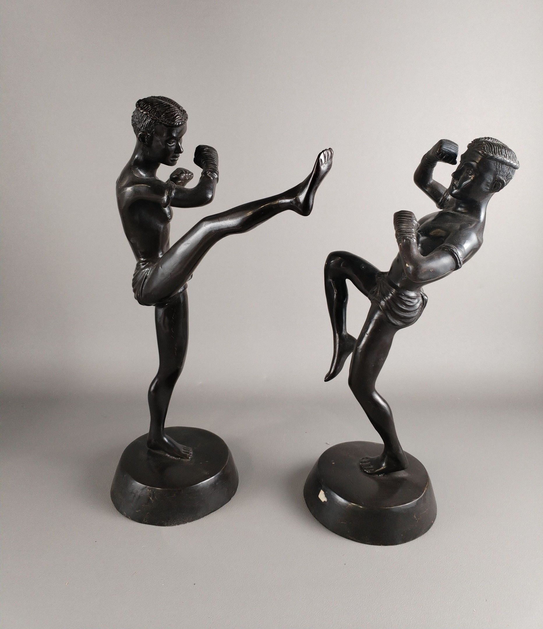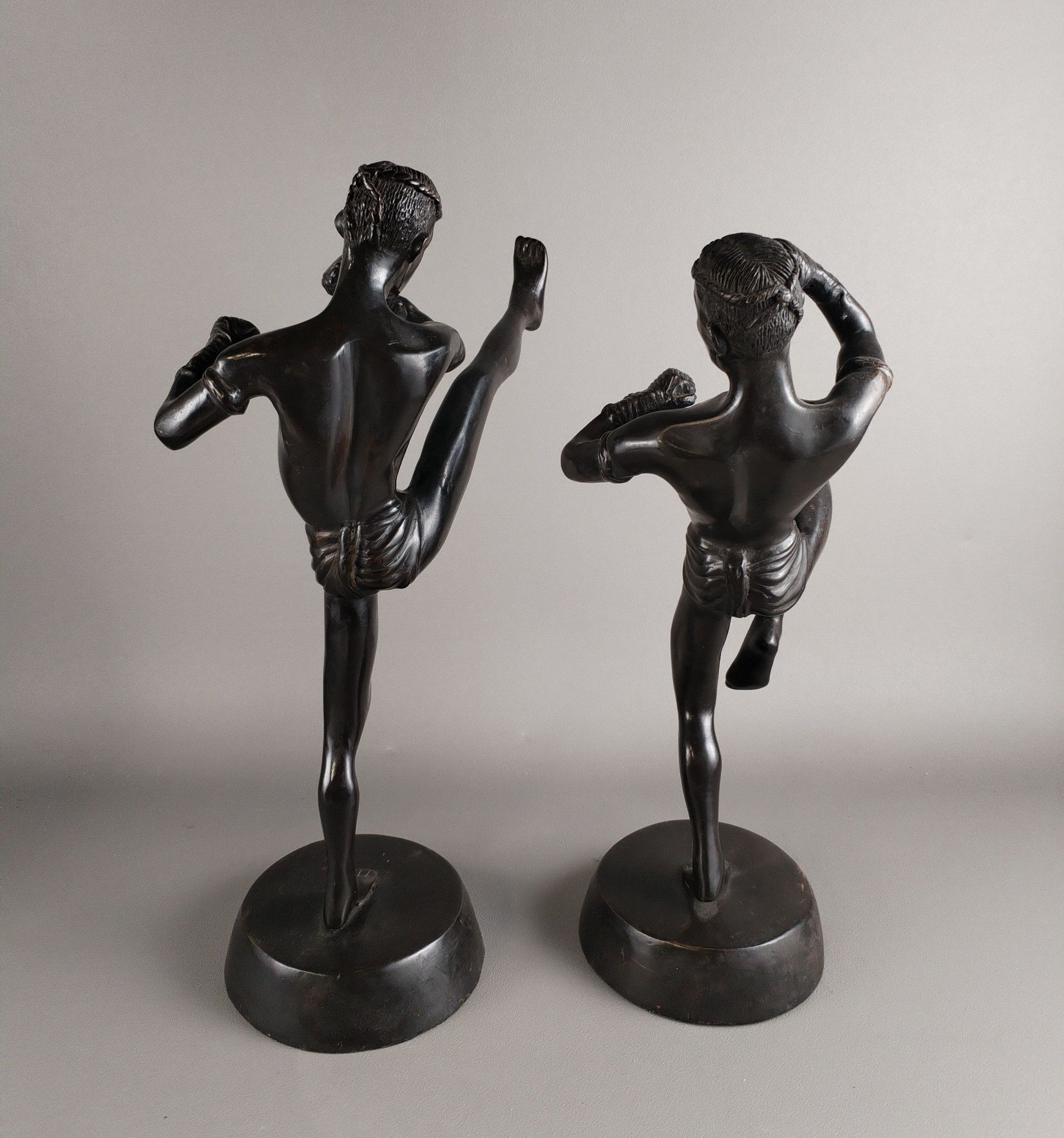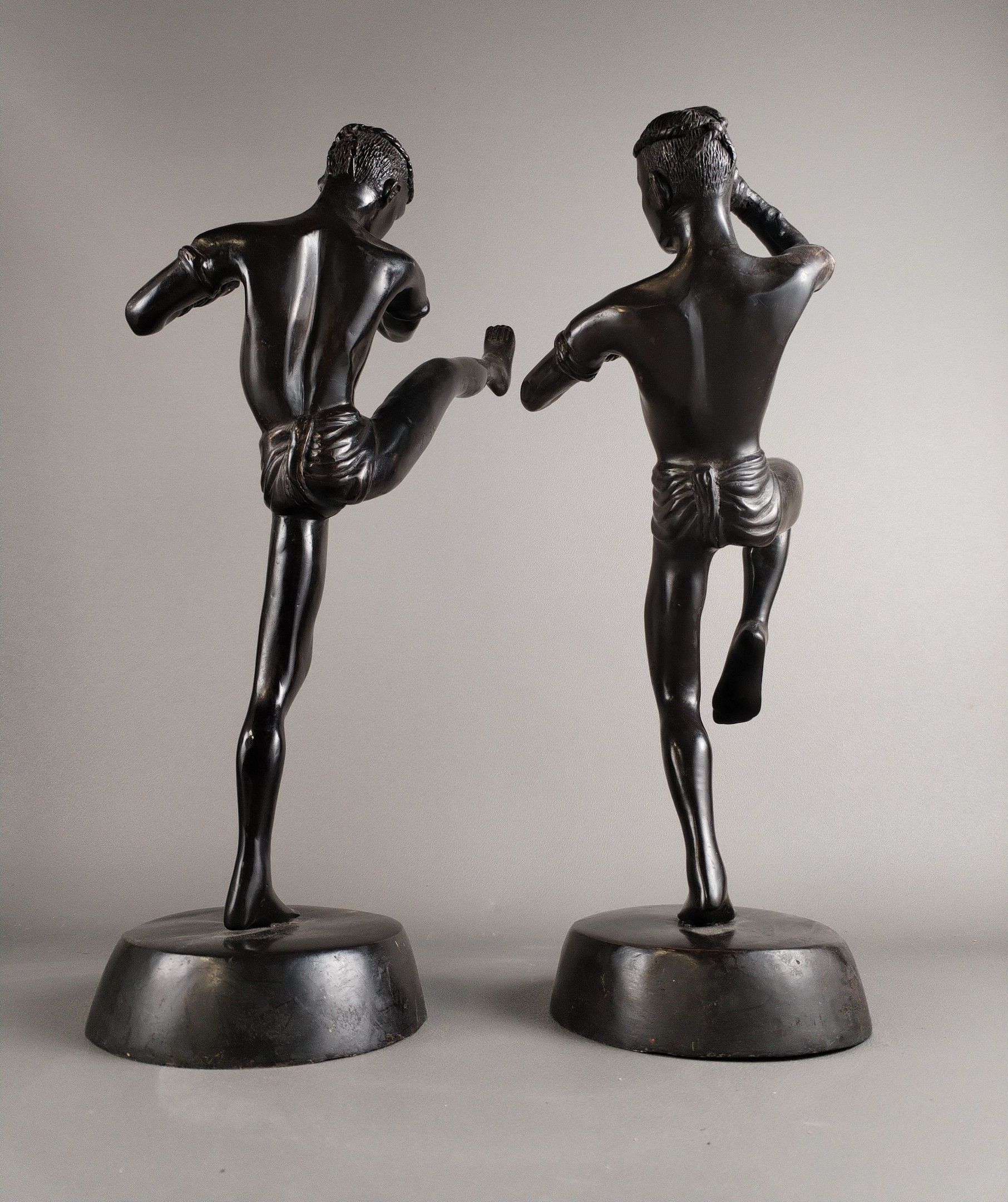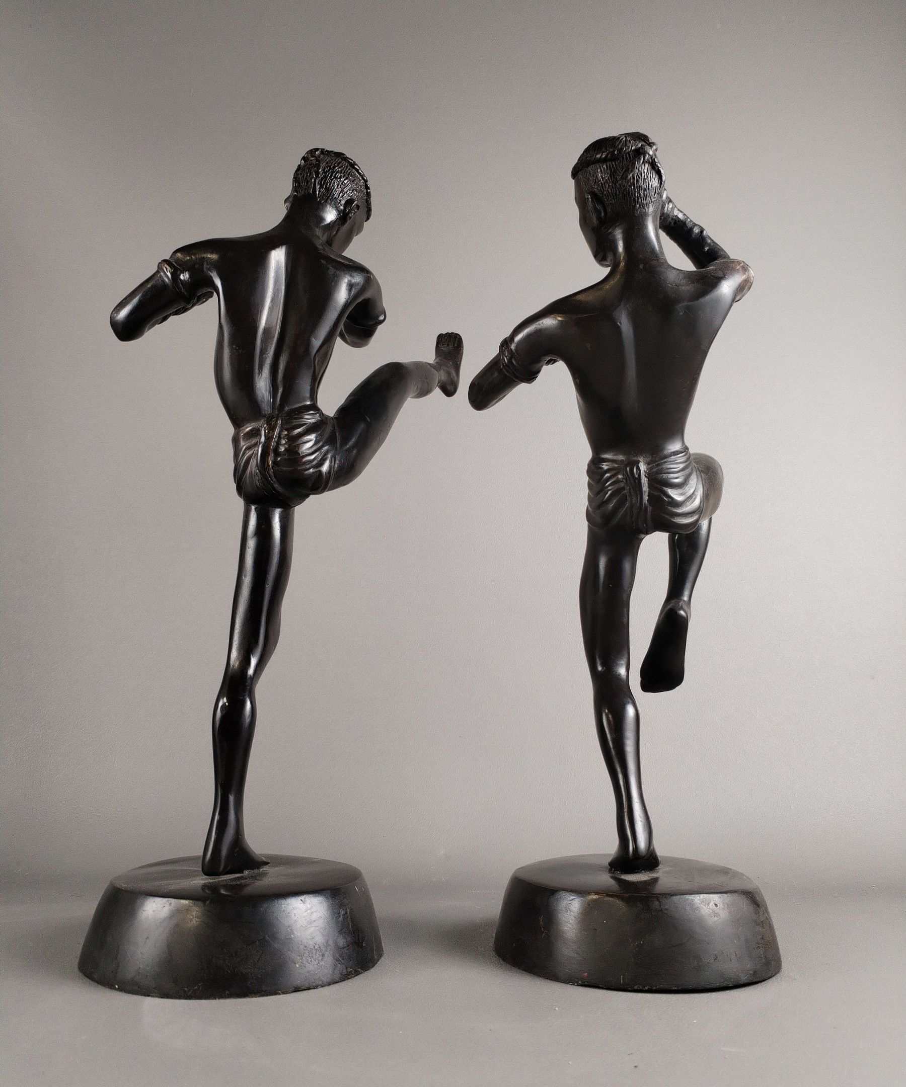 Pair of black patina bronze statuettes representing "Two Thai boxers".