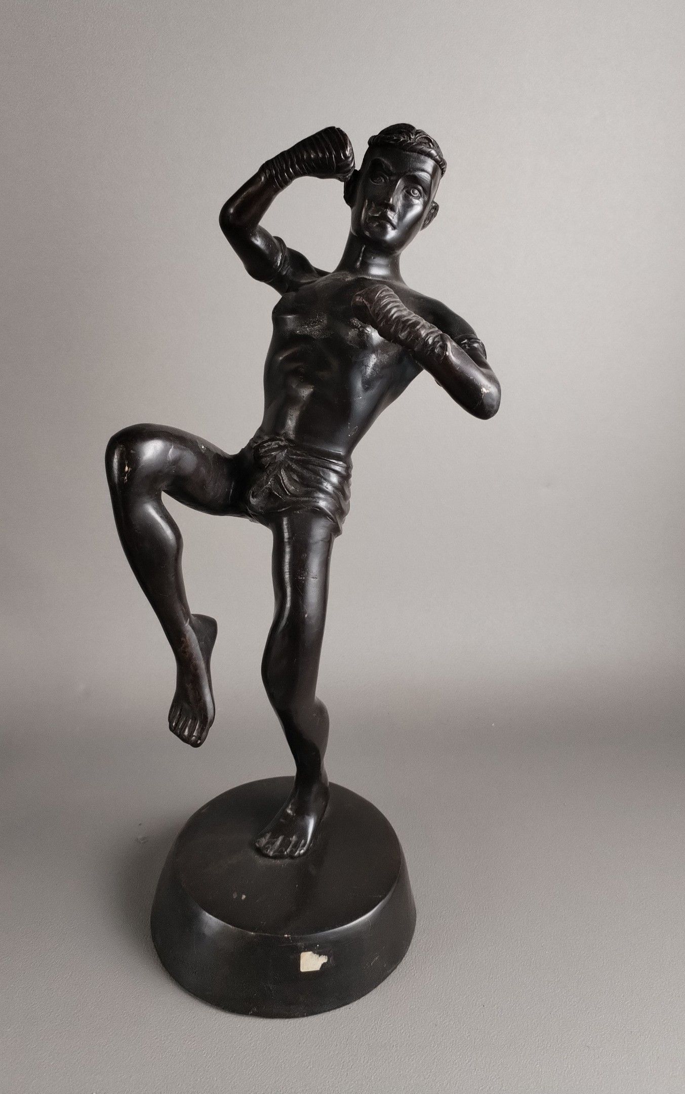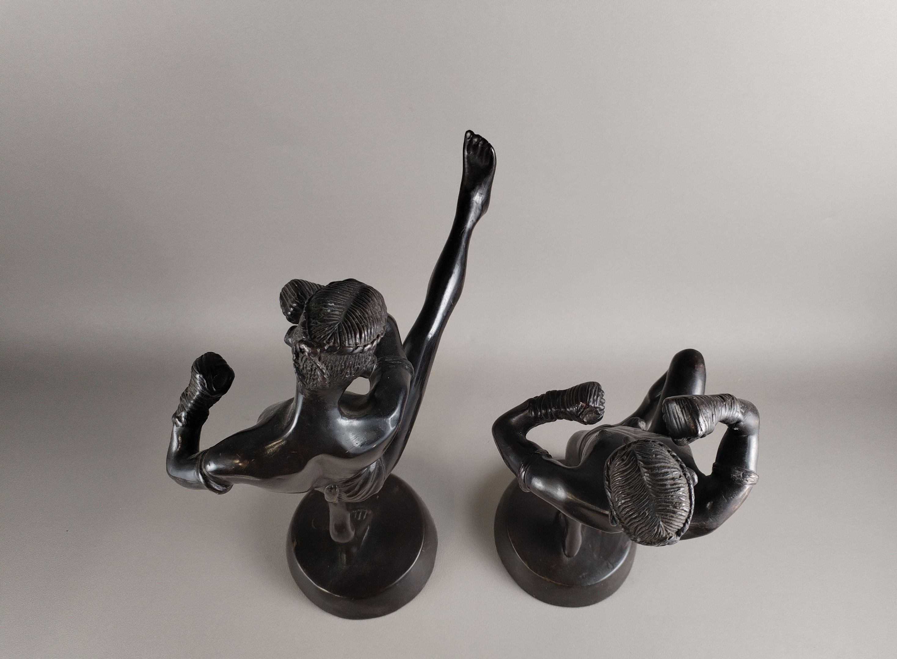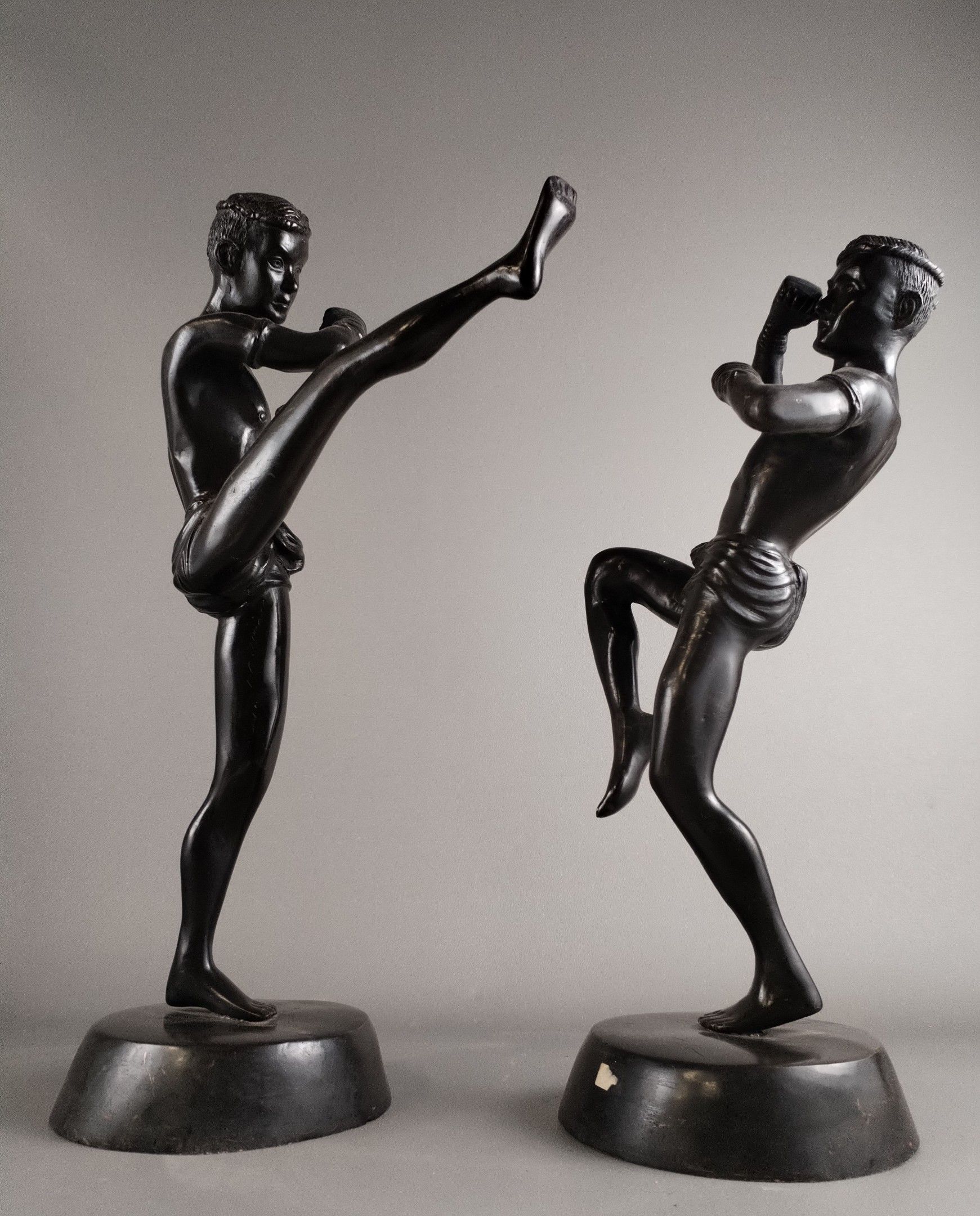 Pair of black patina bronze statuettes representing "Two Thai boxers".