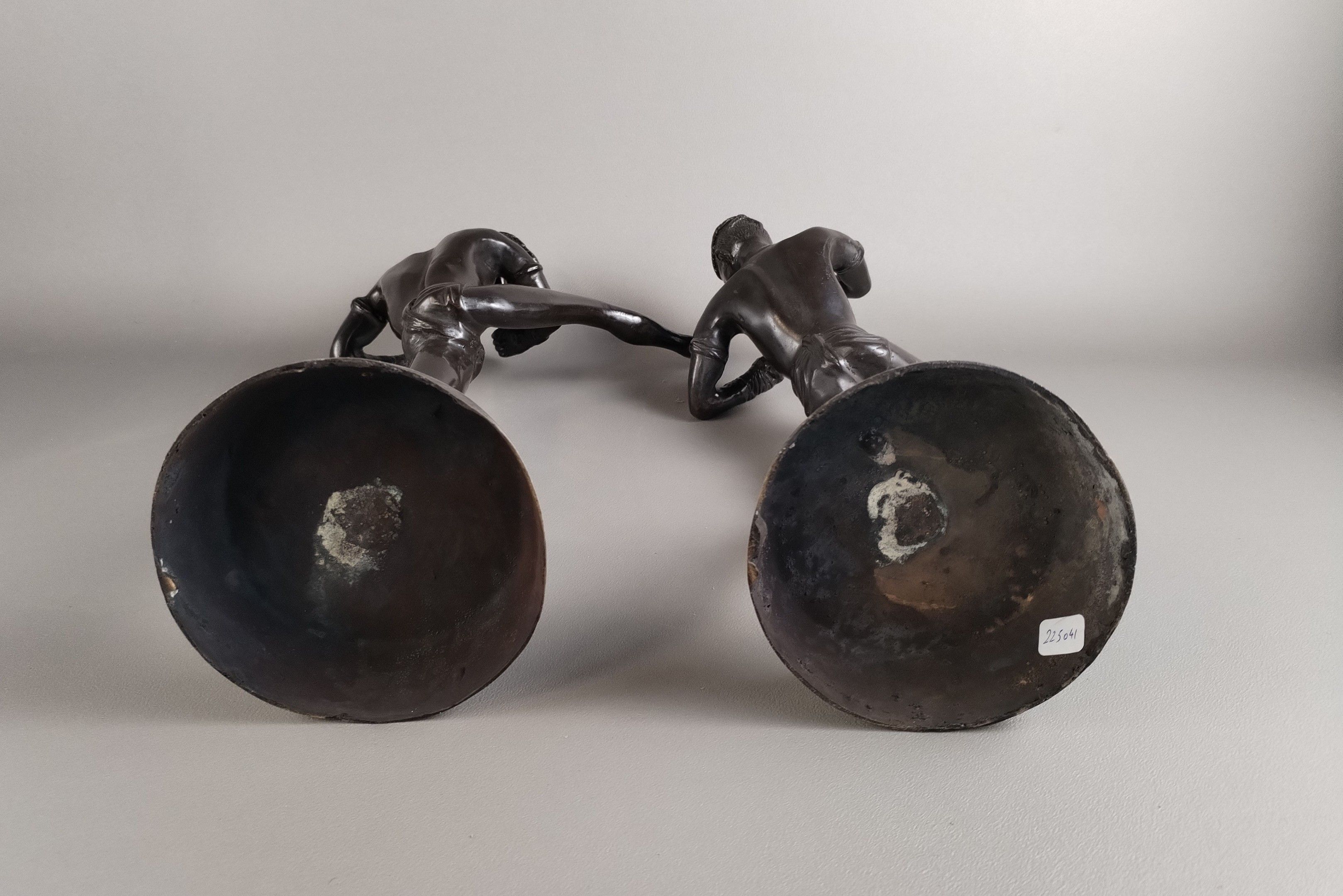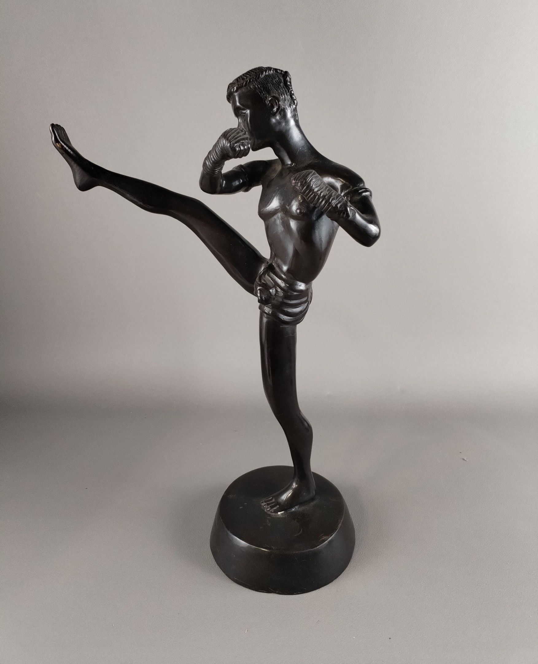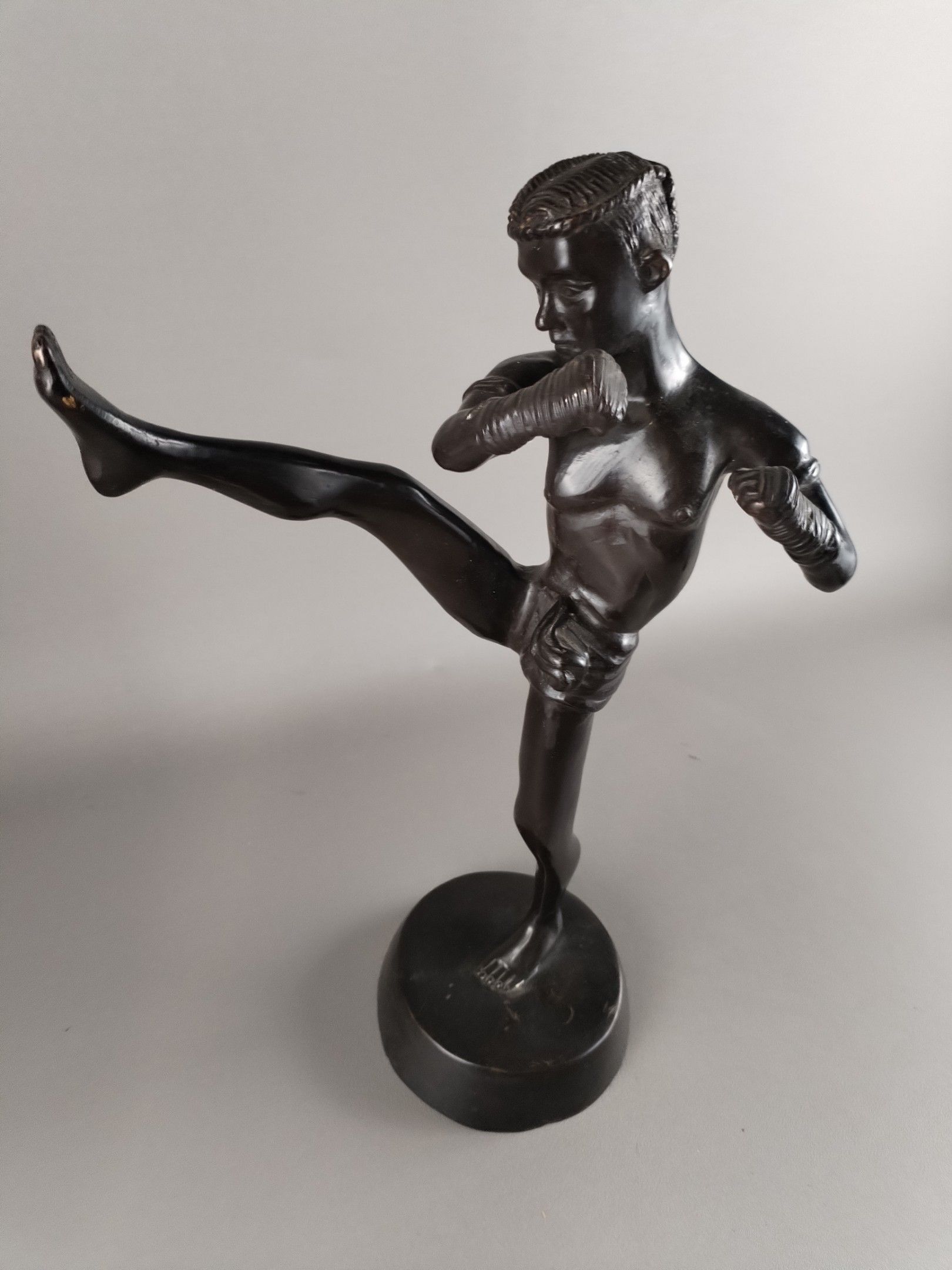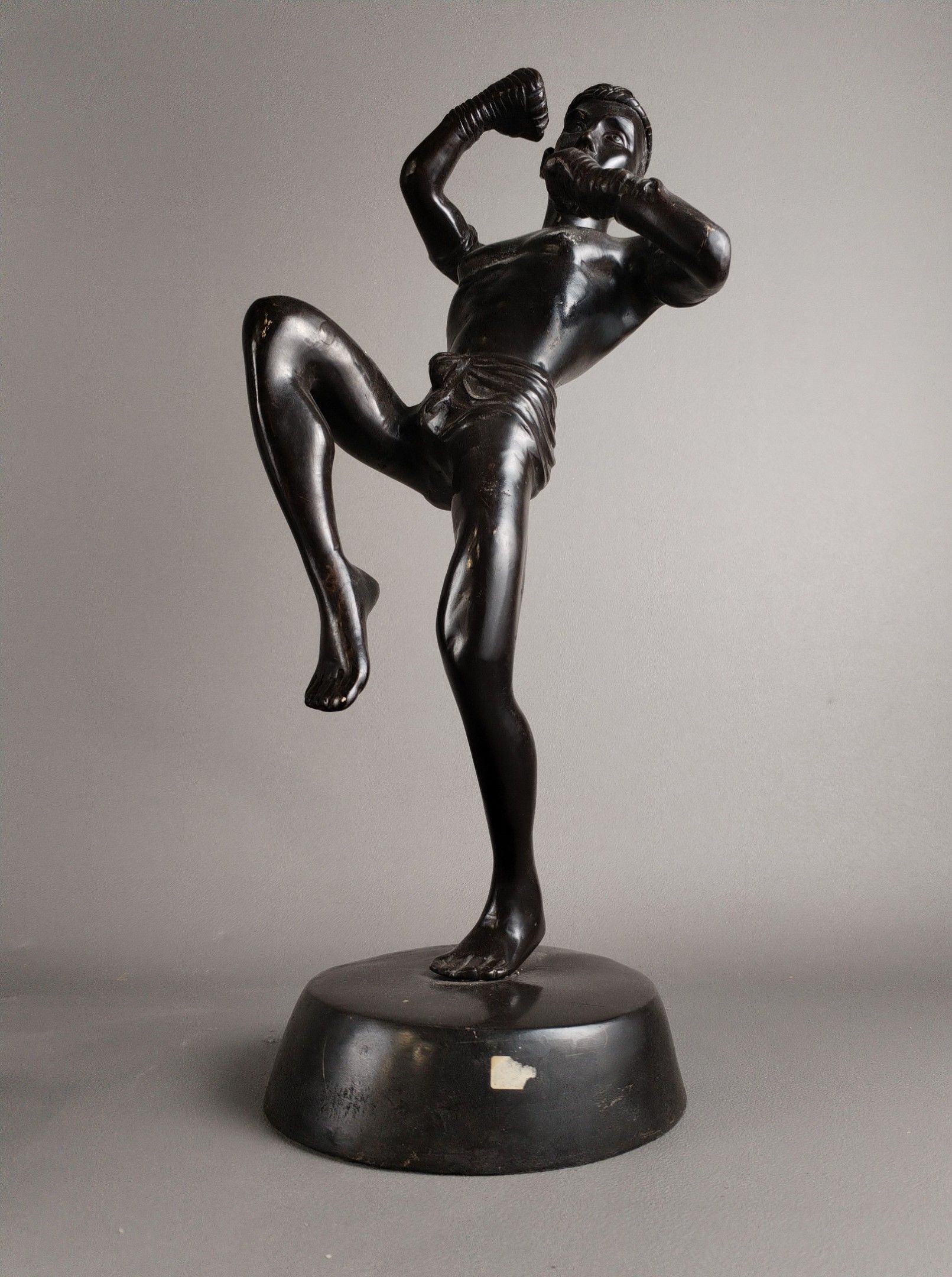 Pair of black patina bronze statuettes representing "Two Thai boxers".