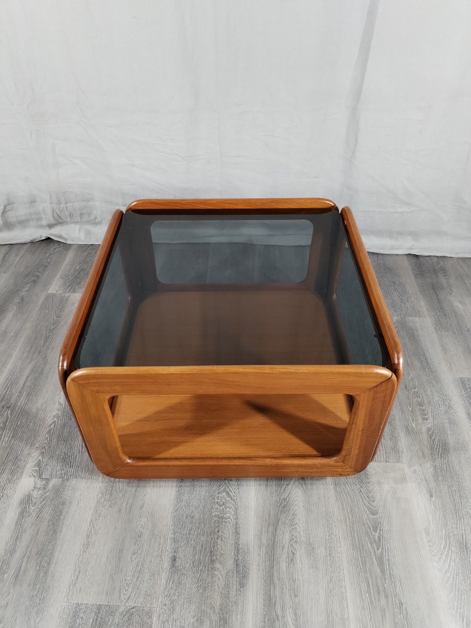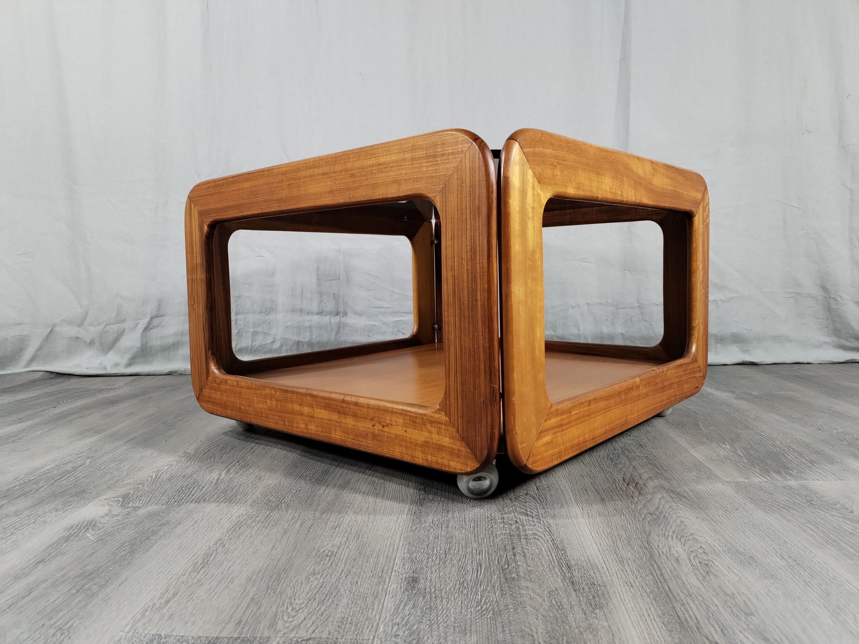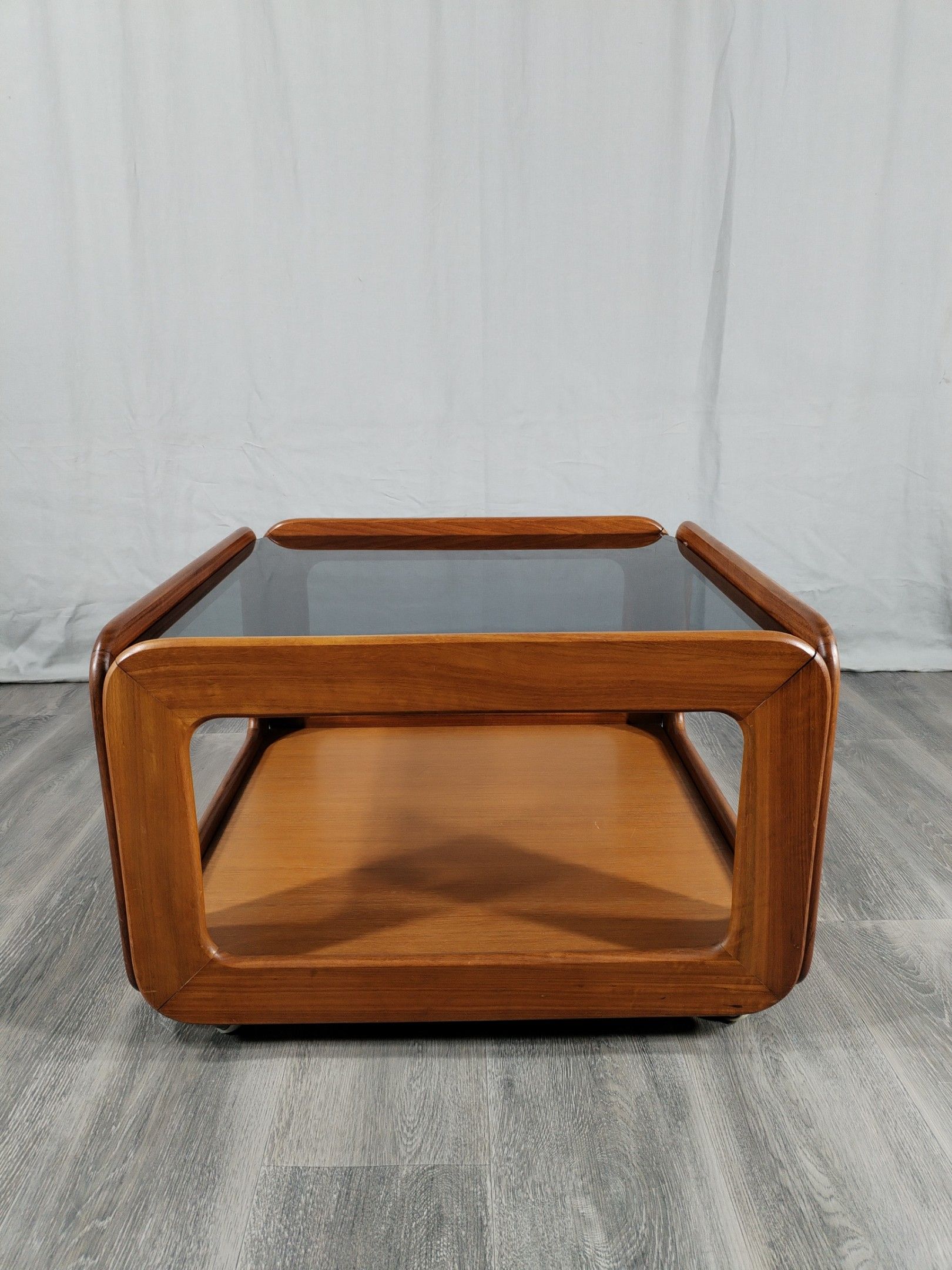 Square coffee table on castors in walnut and stained glass by AFRA and Tobia SCARPA.