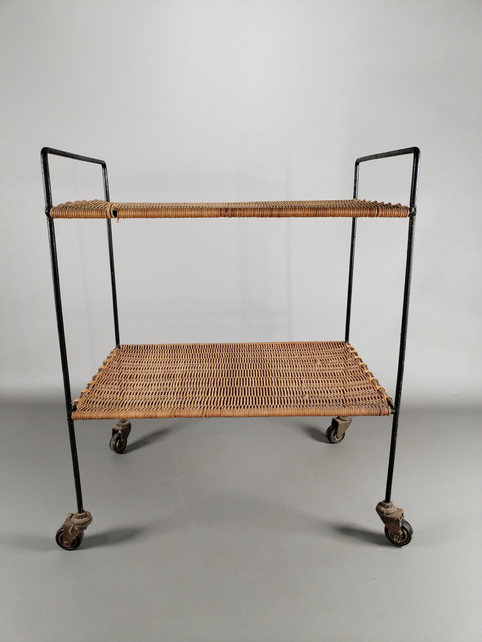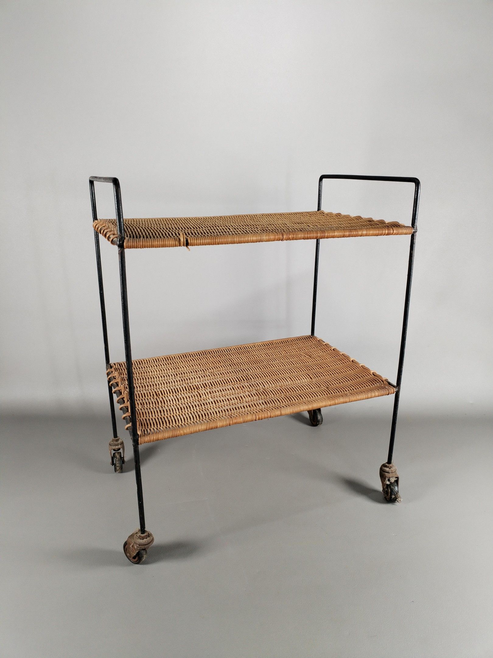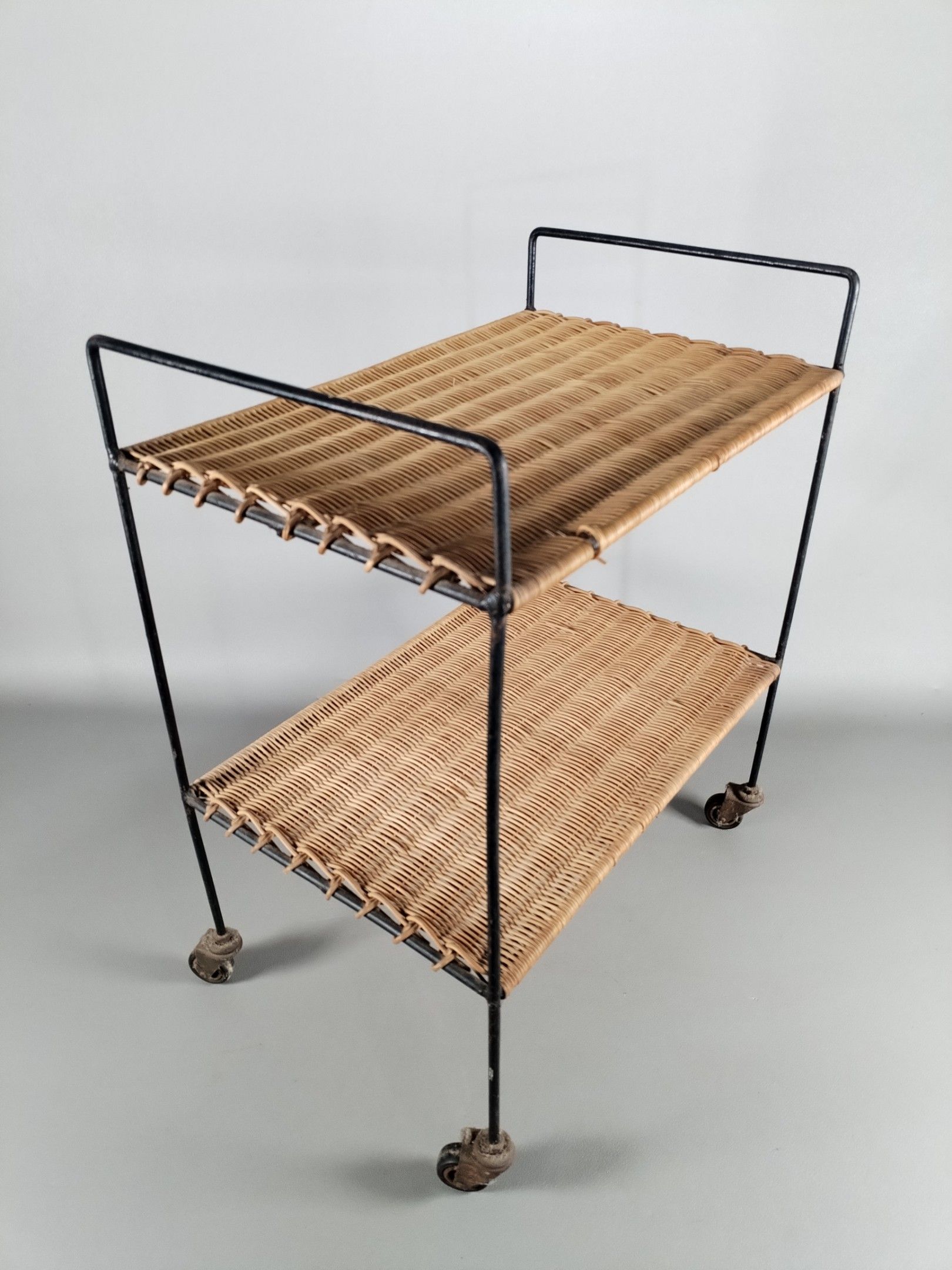 Iron and rattan side table Length: 49 cm X Width 32 cm X Hei…