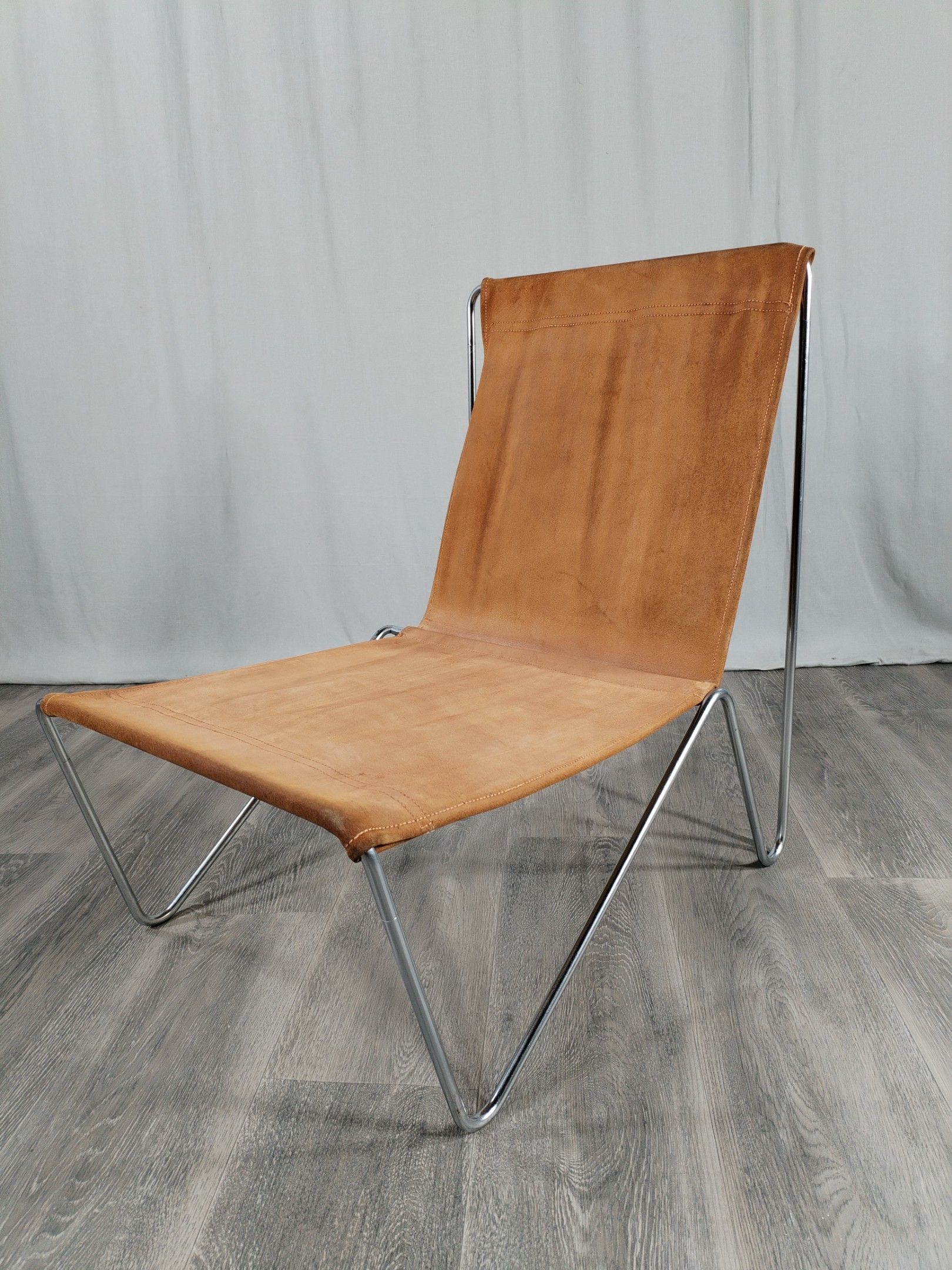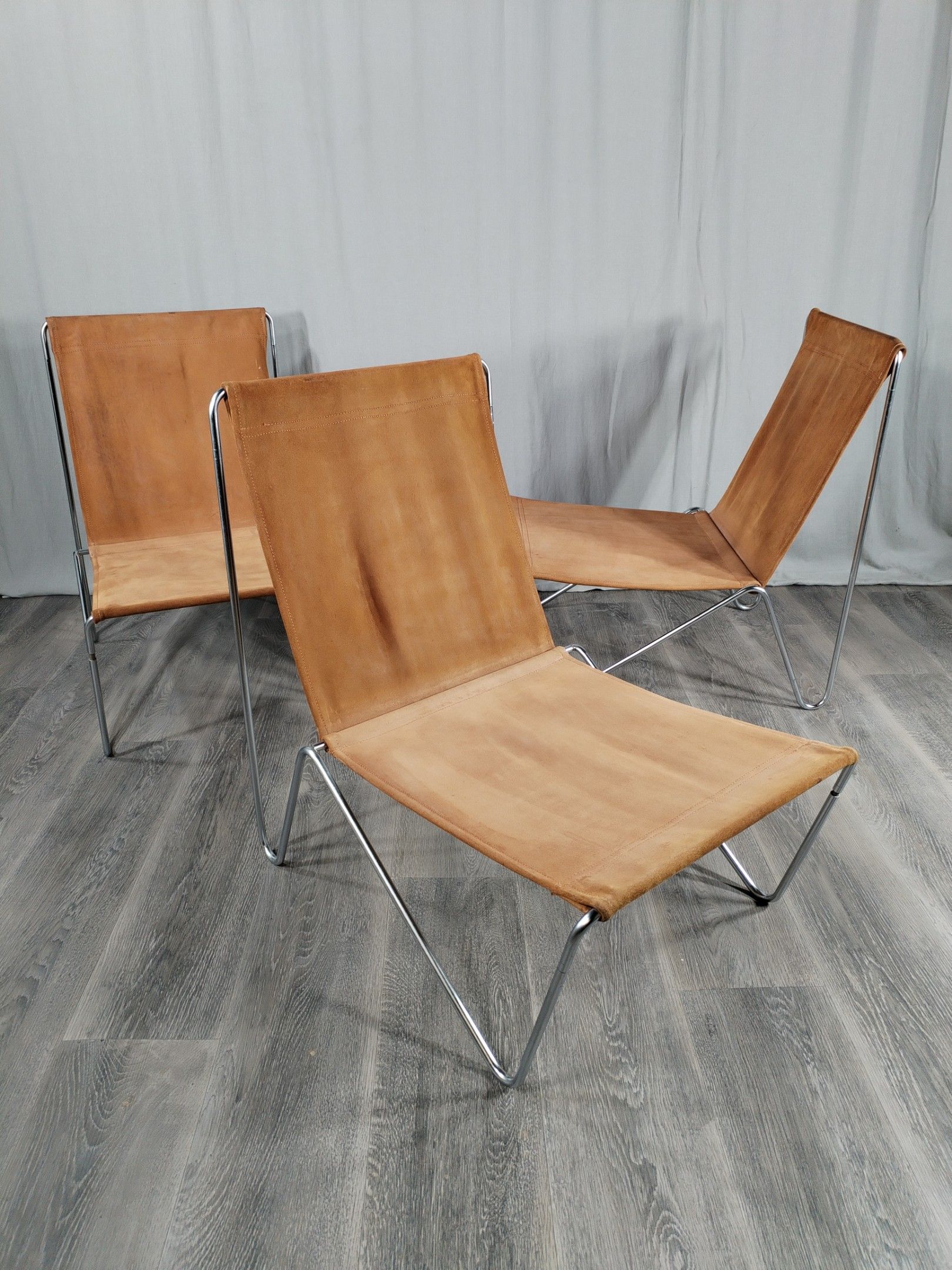 Suite of 3 Bachelor chairs by VERNER PANTON (1926-1998) for FRITZ HANSEN, fawn suede upholstery.
