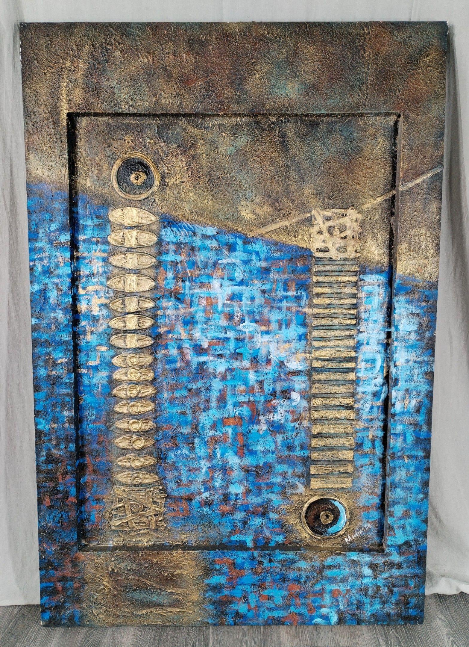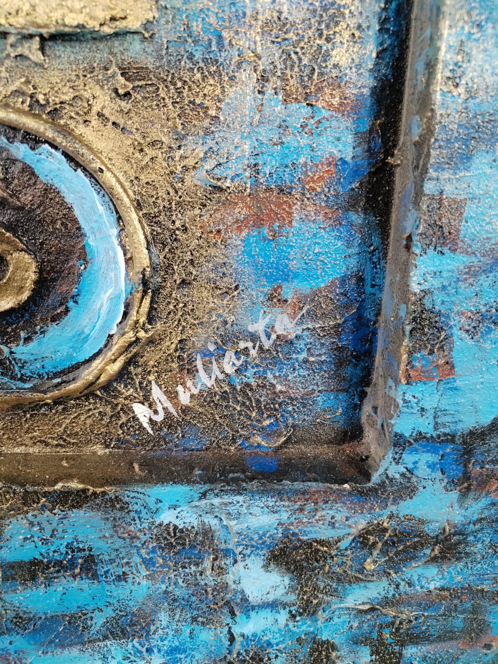 MULIARTA (?) "Abstract composition in blue and gold".