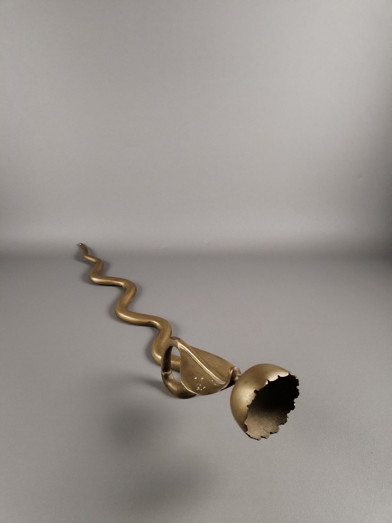 Curious gilded brass wall lamp in the shape of a cobra supporting a basin.