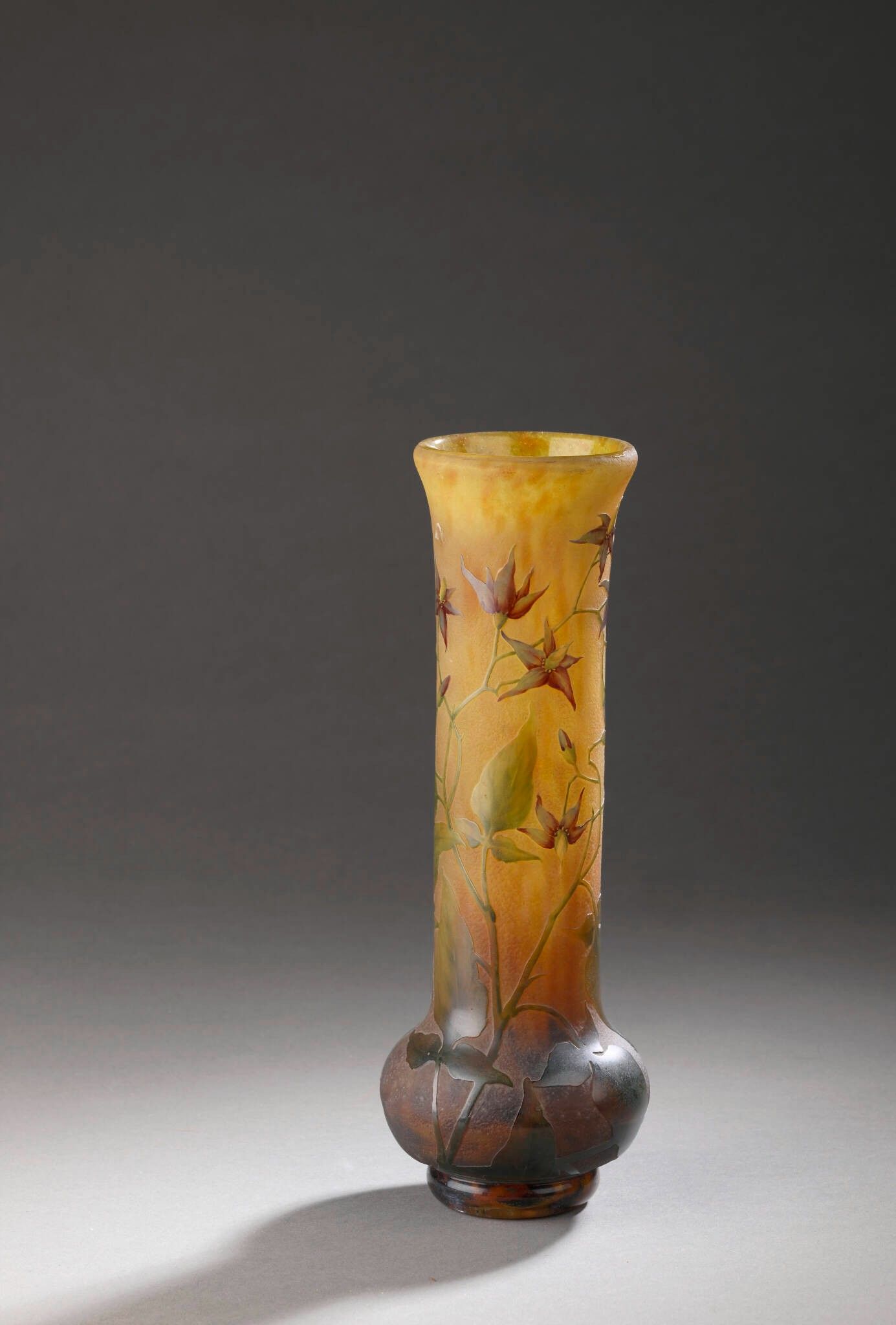 Premium DAUM - NANCY Vase with a long conical tubular neck on a swol…