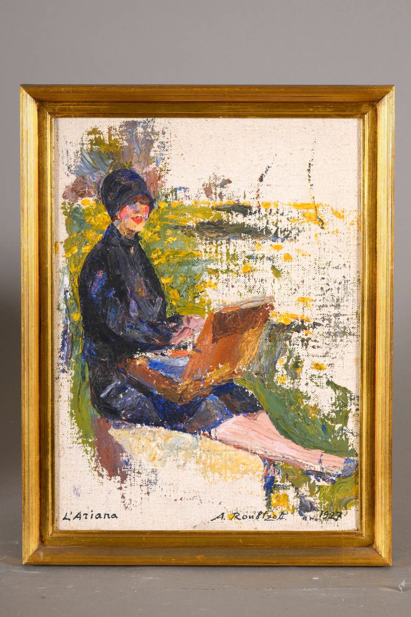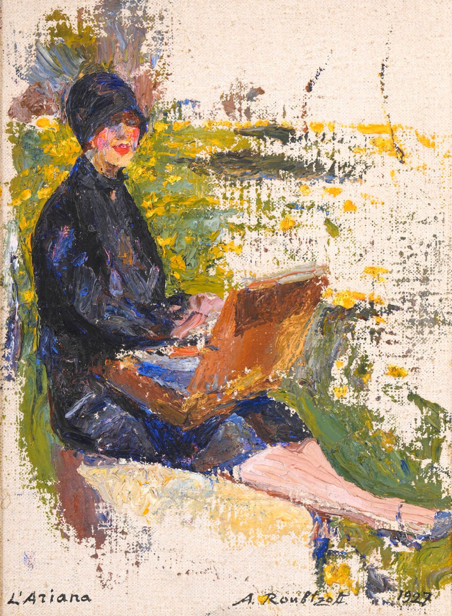 Oil on canvas, pasted on cardboard, signed and dated lower right "A. Roubtzoff. 1927" and localised lower left "L'Ariana", in a gilded wooden frame.