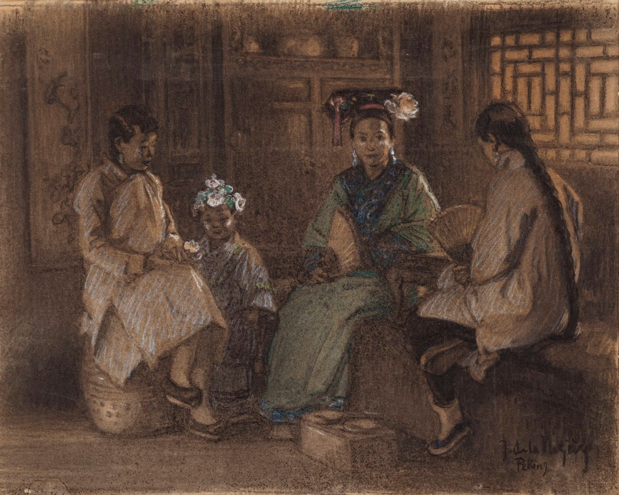 BIBLIOGRAPHY OF A RELATED WORK: This drawing can be compared with an illustration that appeared in the book l'Extrême-Orient en images, Paris, Librairie Félix Juven, 1902, under the title "Femmes mandchoues prenant le thé" ("Manchu women taking tea").