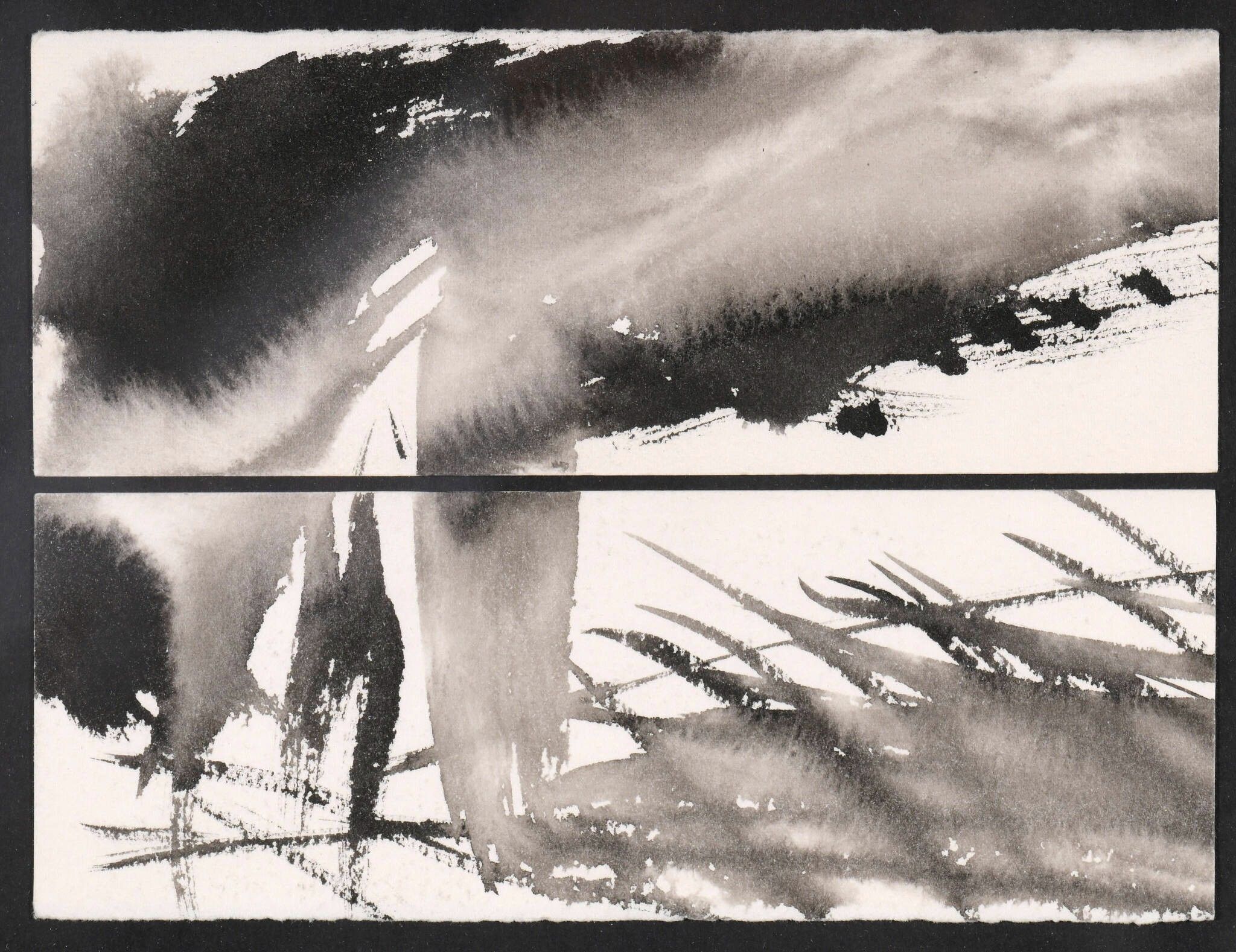 Indian ink wash on two sheets of paper, studio stamp on back,