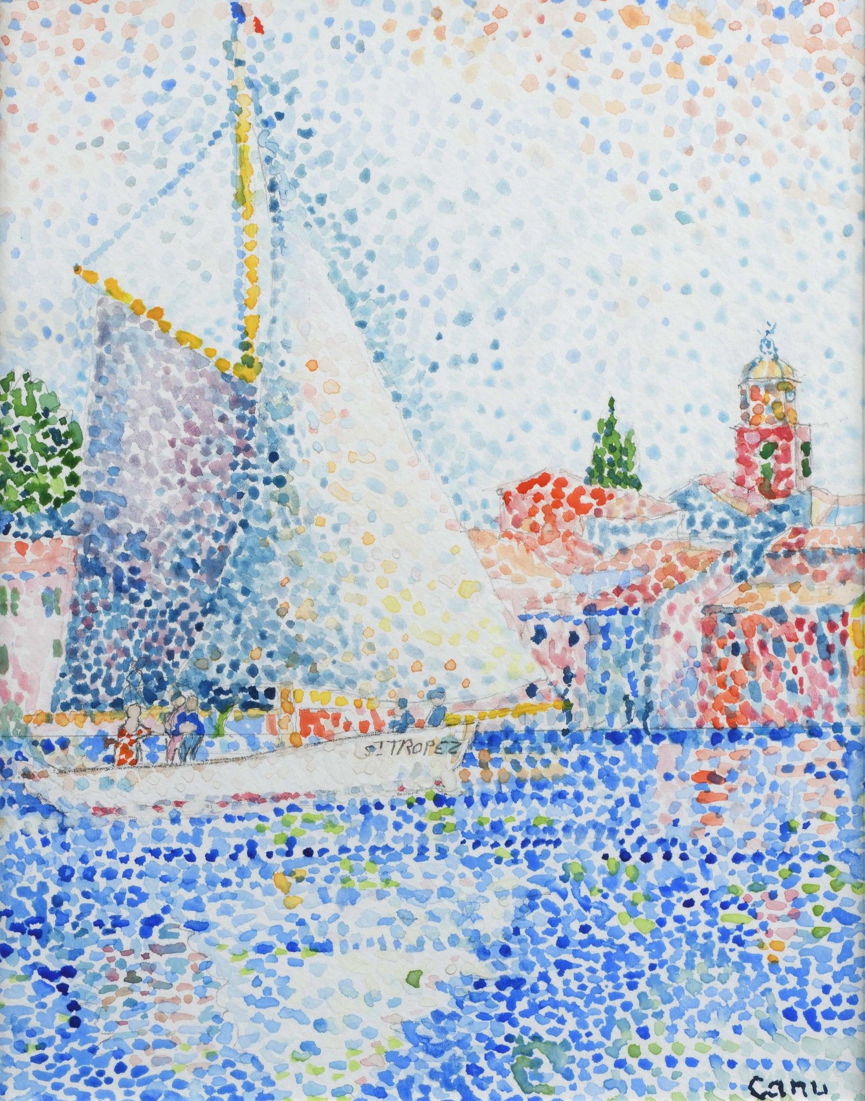 Premium Yvonne CANU (1921-2008) Sailboats in St Tropez Watercolour o…
