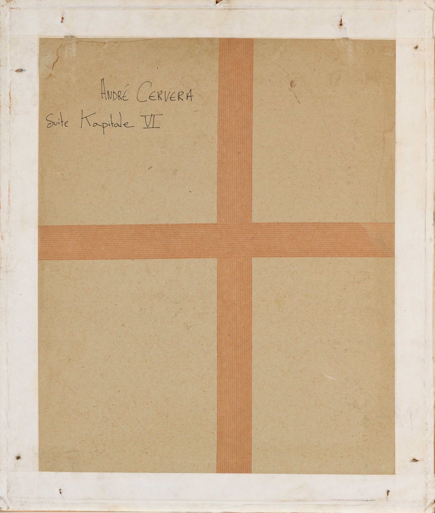 André CERVERA (Born 1962) Suite Kapitale VI, 1992 Gouache on paper. Signed and dated lower right. Countersigned and titled on the frame. 40 x 30 cm Provenance: - Galerie Les Singuliers, Paris - Collection Léon-Lef Forster