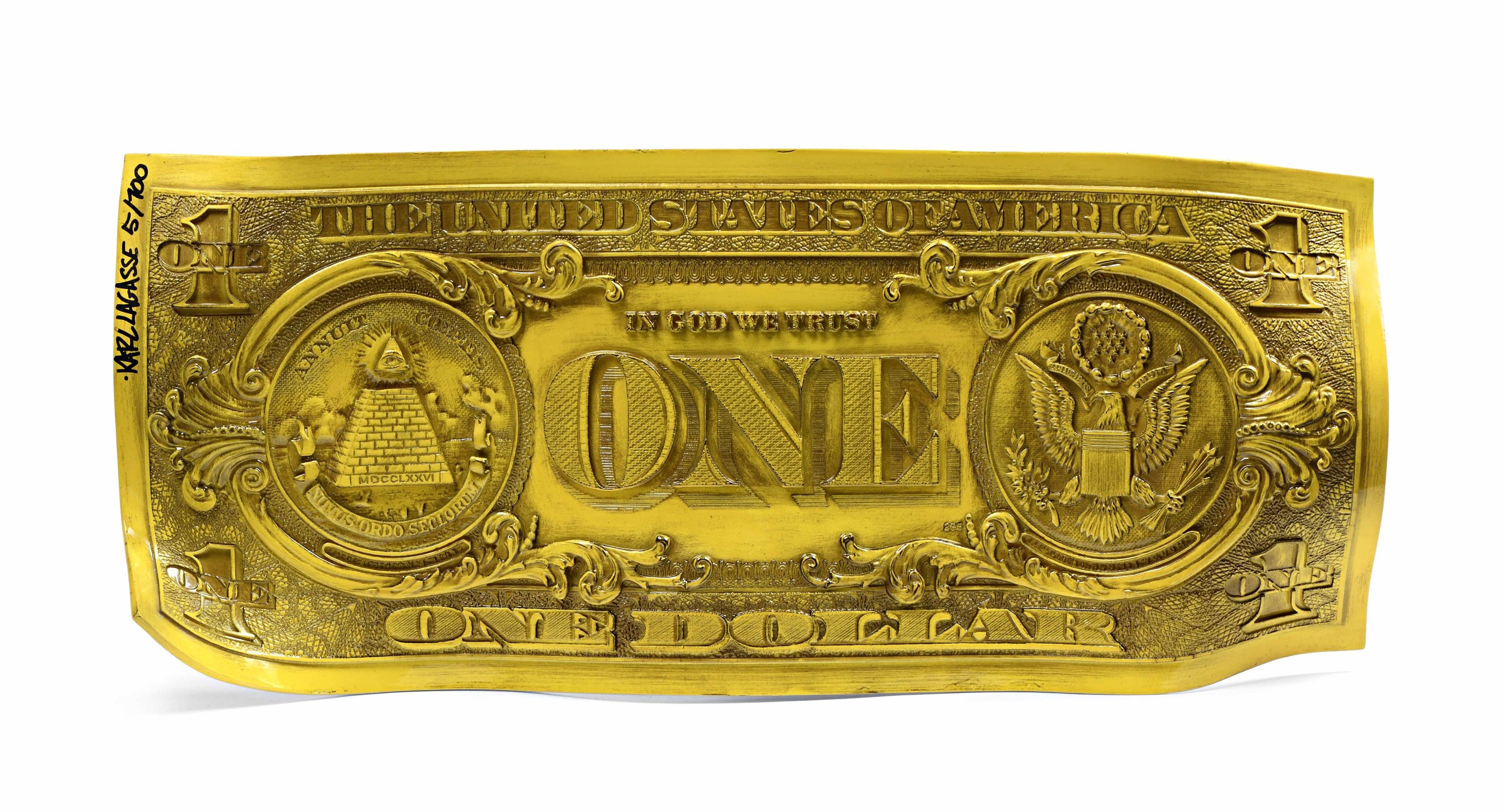 Karl LAGASSE (Born 1981) One Dollar, 2020 Resin print. Signed and numbered in felt-tip pen 5/100. 22 x 51 cm