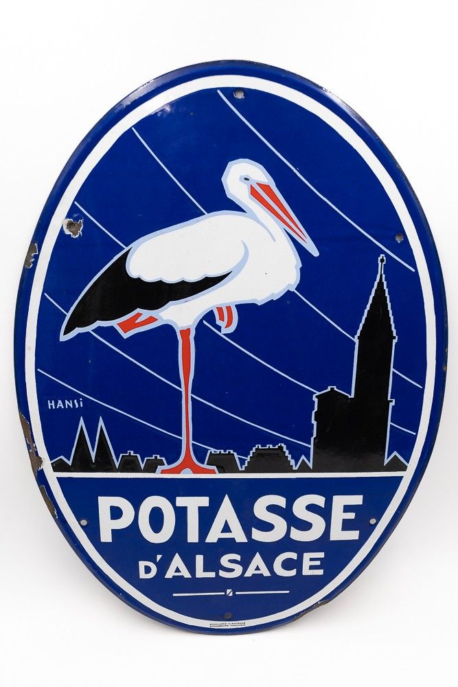 POTASH FROM ALSACE - Flat enamelled plate, single-sided, cir…