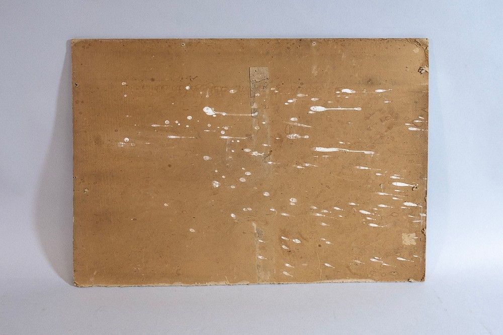 The background is in good condition, the margins have a few minor holes, the corners are dull. The foreground is in average condition, with tears, missing parts and stains. The two parts are detached, their fasteners are missing.